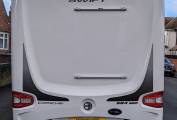 The heart of the Swift Escape 684 lies in its well-appointed L-shape kitchen. Equipped with a 3-gas burner hob, sink with mixer taps and a removeable draining board, combination oven/grill, and a microwave oven, culinary adventures await. Across from the kitchen, discover a slimline domestic fridge freezer and a combined washroom with shower facility, ensuring utmost convenience wherever you roam.