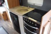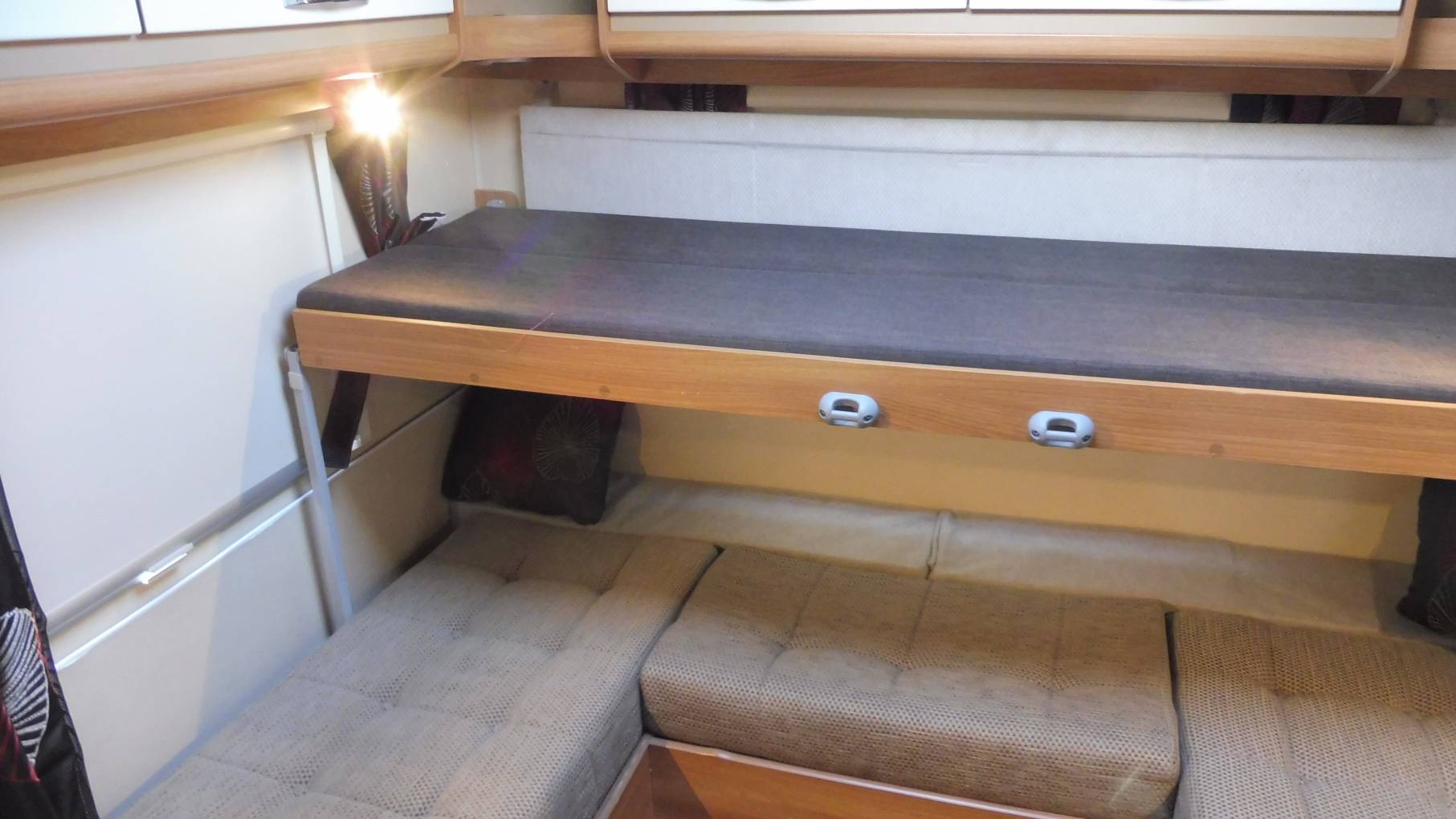 At night this has a fold up bunk allowing two people to sleep across the rear of the van. The dinette can be used as a single bed and the final accommodation is in the large overcab double bed. Allowing a total of five to sleep in comfort.