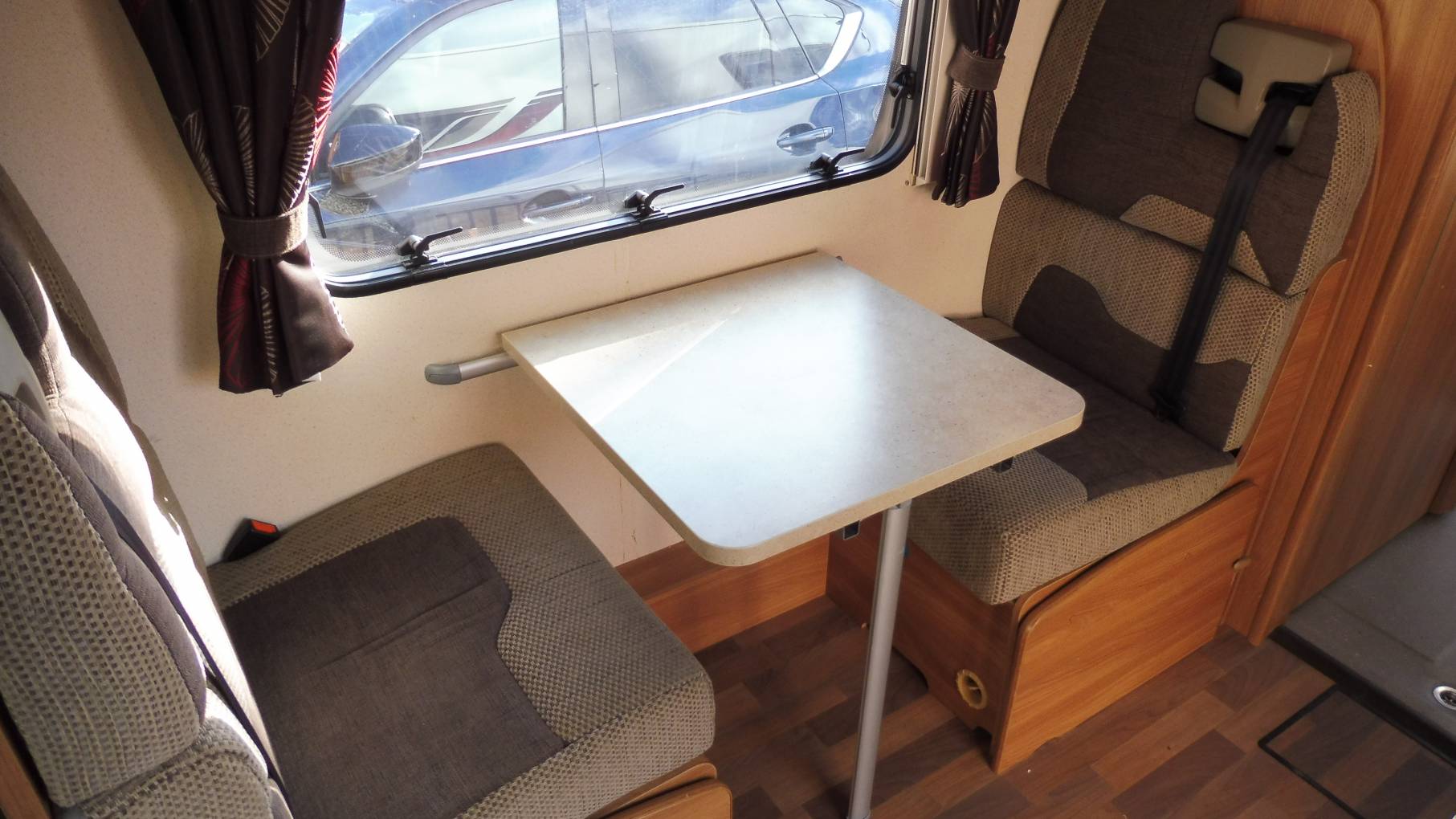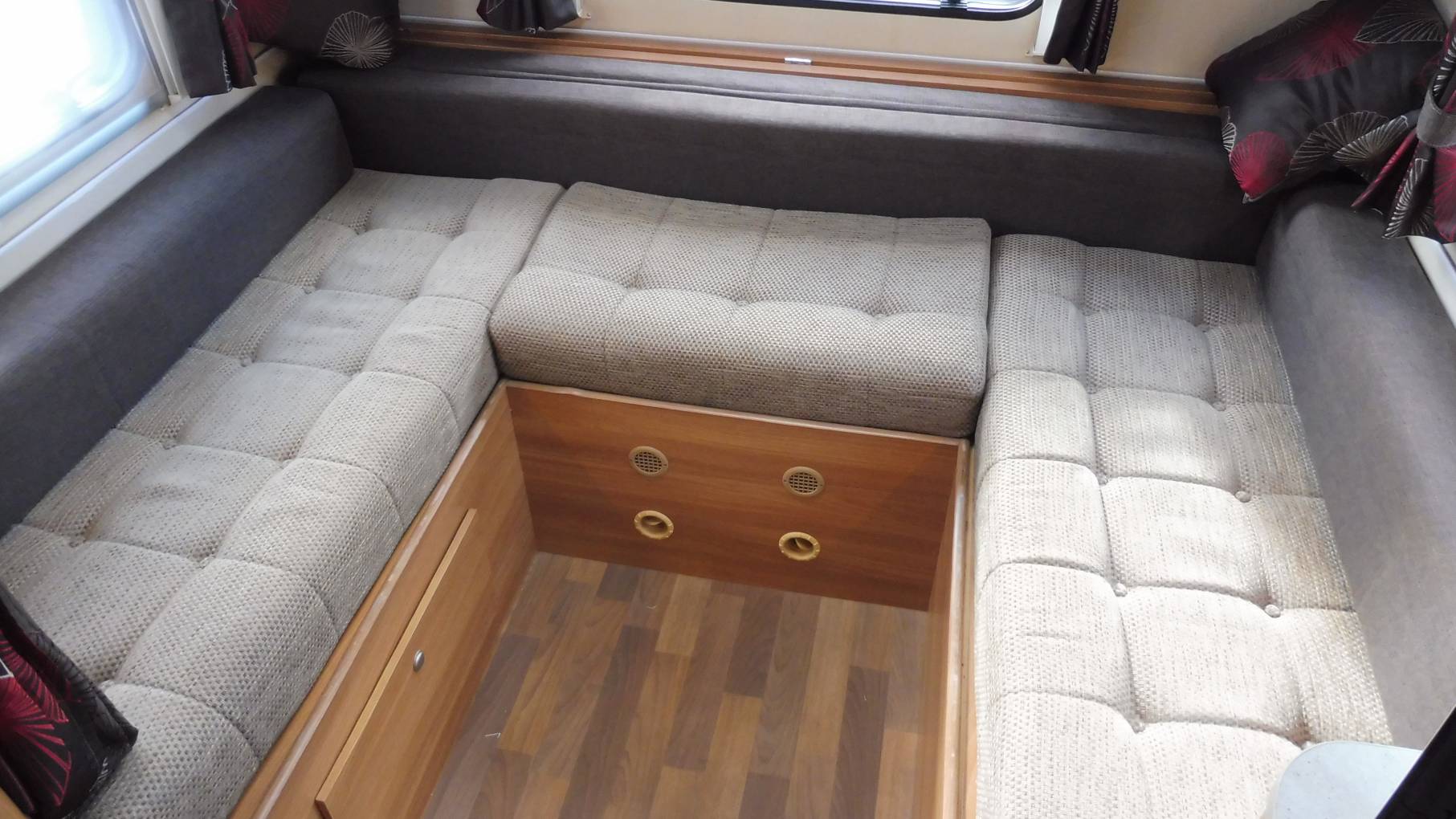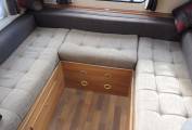 At the rear of the motorhome there is a comfortable u-shaped lounge allowing for a bright and airy space to while away the time.