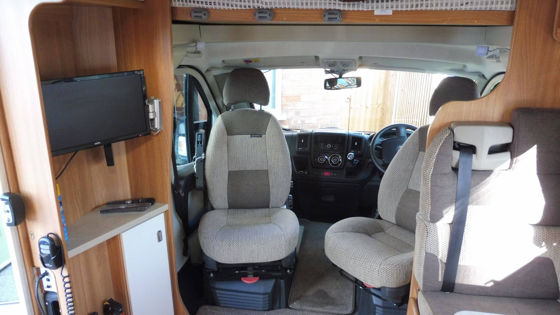 The vehicle is based on a low mileage 2.3L Fiat Ducato and the cab is equipped with cruise control, air-con, reversing camera and pleated blinds.