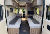 This high level quality conversion offers a 2 berth sleeping capacity along with 2 travelling seats and has a rear lounge layout.