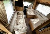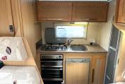 Stepping inside the Elddis you entre at the rear kitchen which is complete with a 3-way fridge, 3 gas burner hob, oven and grill, sink with draining area, plenty of preparation space and ample storage.