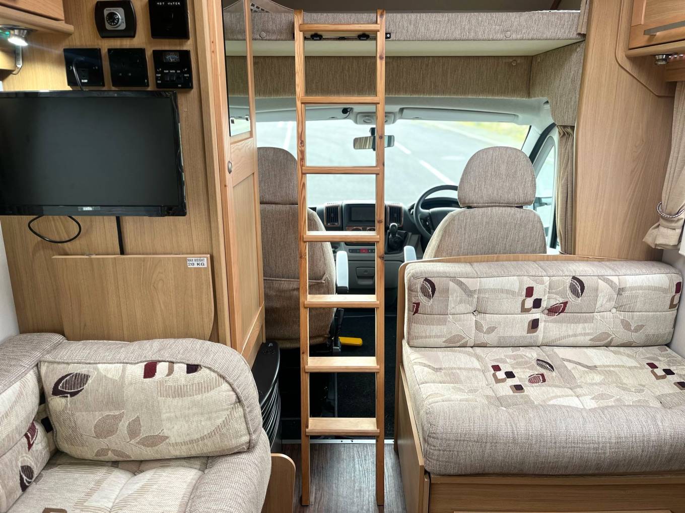 Over the cab is another large double bed with wooden ladders to gain easy access.