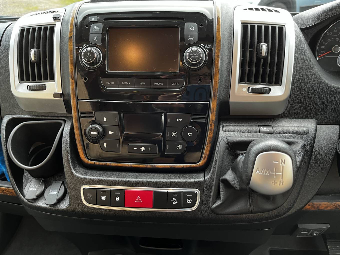 Base vehicle is Fiat Ducato 2287cc with Automatic gear box – Cruise control - Cab air conditioning - Reversing camera - Swivel cab seats – Central locking to habitation door - Power point, heating, lighting and load restraint system in garage – Factory fitted Alarm - Bluetooth.