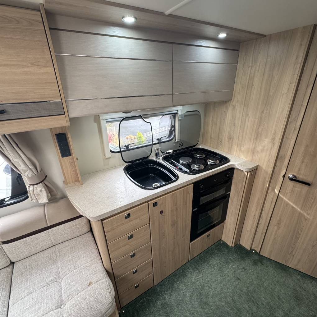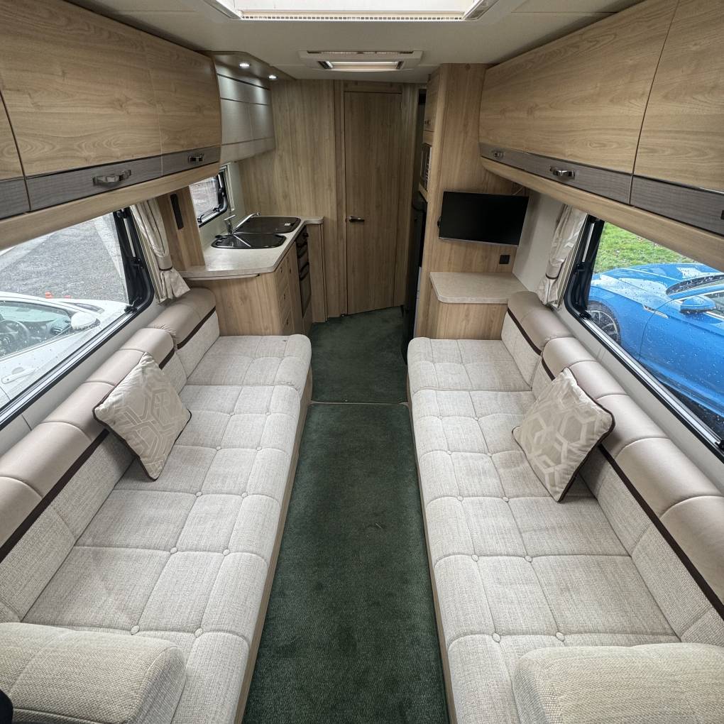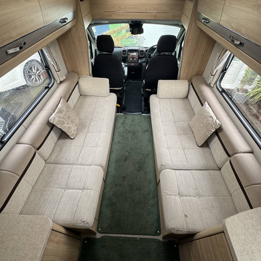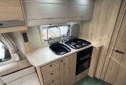 This is the perfect motorhome for a couple looking to explore and holiday anywhere and everywhere you can think of! The very popular large rear washroom comes very well fitted with toilet cassette, hand wash basin, wardrobe and separate shower cubicle. In your kitchen area you have yet more great features such as a large fridge freezer, microwave, full oven with grill, 3 burner gas hob and a 230v electric hot plate.