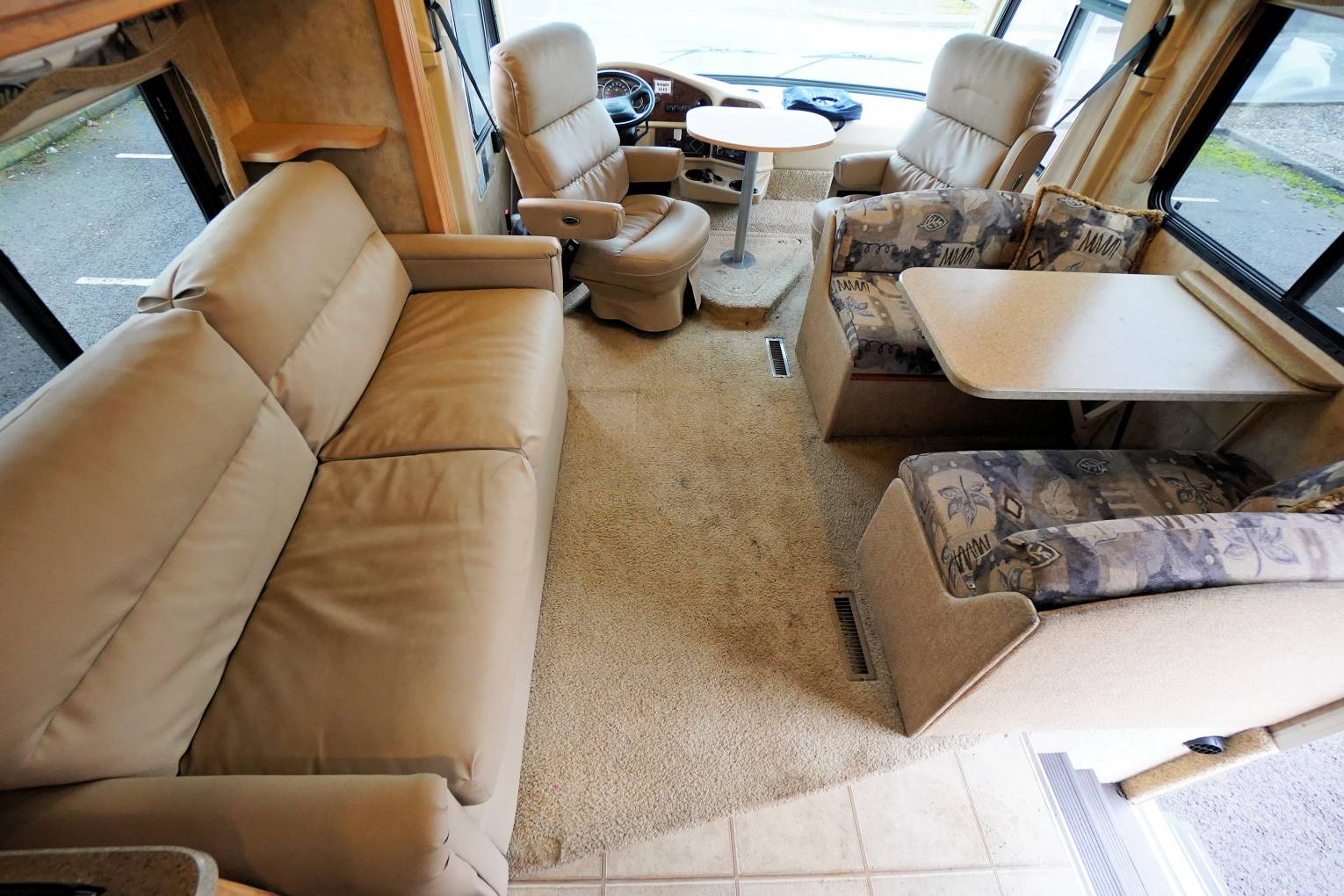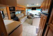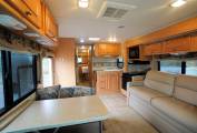 The two electrically operated slide-outs make the lounge and dining area very spacious and comfortable. Both the dining area and the large settee can be made into a double. This area benefits from ceiling air-conditioning for these warmer days and really is a lovely bright space to relax in.