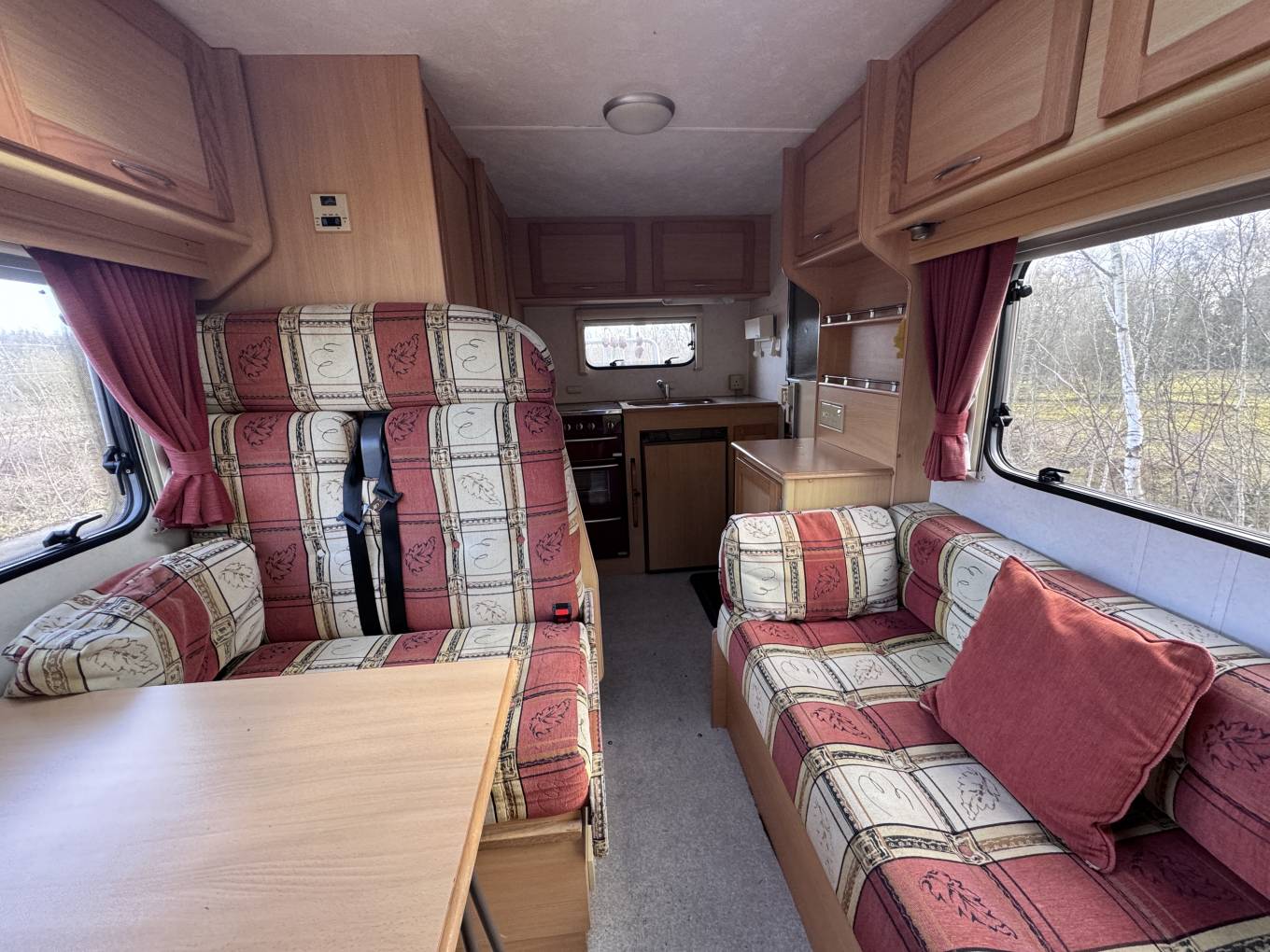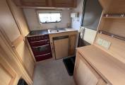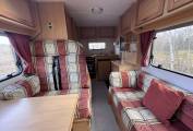 The centre dinette has four seats in total, large windows and a large sunroof above flood the lounge with natural daylight, this area can be made up into a double bed in the evening. A long side sofa can be used as a single bed, making up the fifth berth.