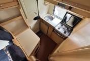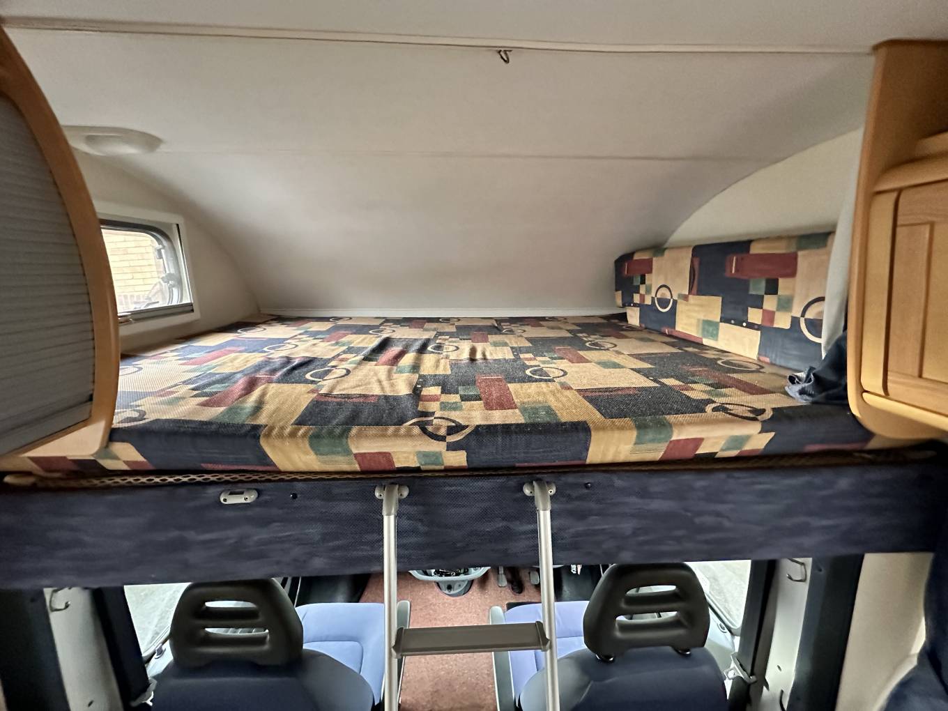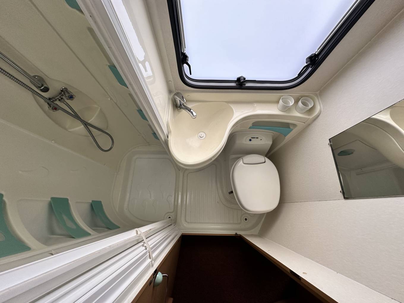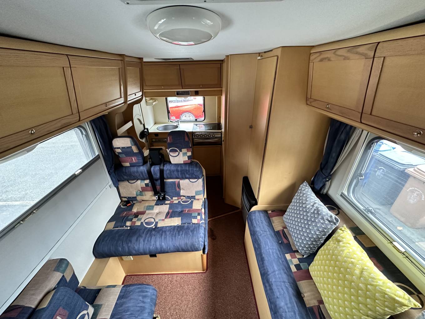 To the rear of the motorhome you will find the well-equipped end kitchen. This is a great space to make home cooked meals while travelling including plenty of worktop space, 4 burner gas hob, separate grill, 3 way fridge with freezer compartment and sink with mixer tap. Adjacent to this you will find the practical washroom, complete with separate shower, wash basin and Thetford swivel toilet. Moving forward is the light and airy dinette area. This is a great place to relax and seats 4 comfortably. When the night draws in this easily and conveniently converts to a good sized double bed. Finally above the cab is a comfortable double bed completing this 4 berth otorhome.