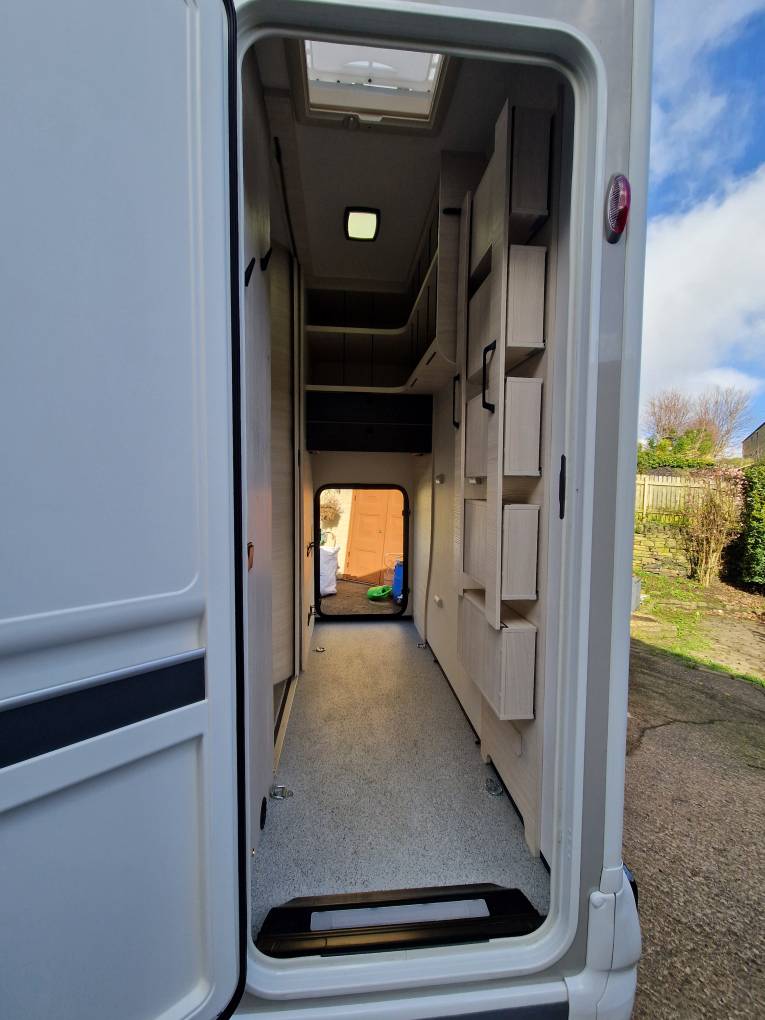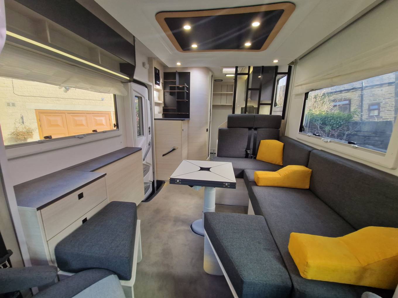 the lounge area, with loads of storage around the whole motorhome, plus a very