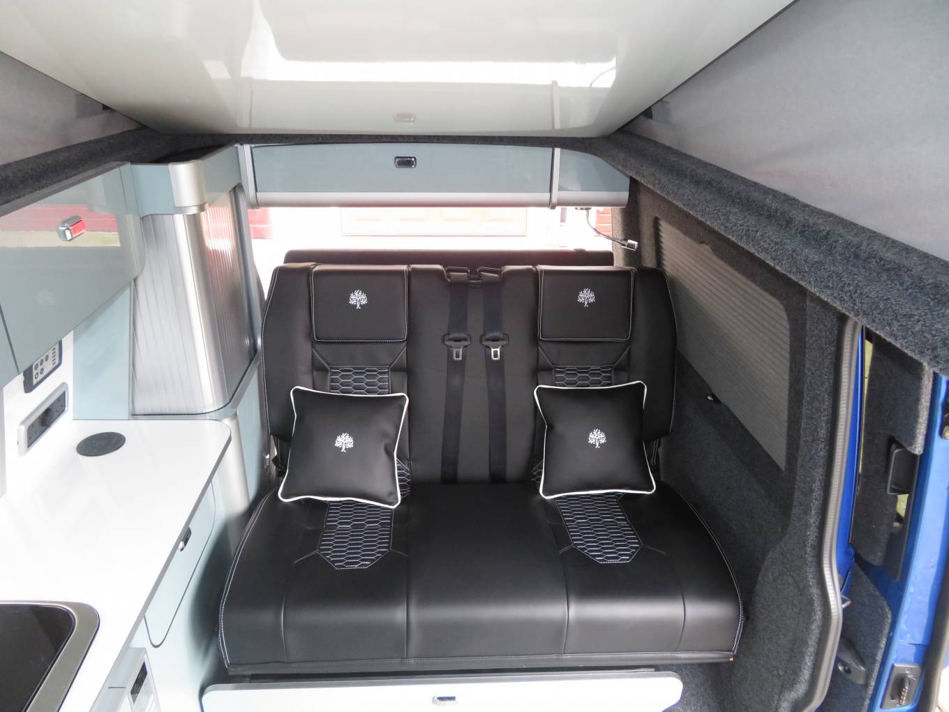 This is a VW T28 H-Line Campervan that has been converted to the highest possible standard by All Seasons Leisure. This particular camper is in absolutely stunning condition and is a credit to the one owner from new. It is exceptionally well kept, inside and out. The search for a new camper van can be incredibly difficult but this is definitely a standout van that has everything you could possible want. The camper is based on their Platinum Conversion and comes with lots of lovely features including black leather interior with stunning white stitching detail, RIB Bed, Solar Panel, Microwave, Dometic 12v Fridge, gas hob with 2 burners, cold water sink and Webasto Diesel heater, it even comes with a built in phone charging plate.