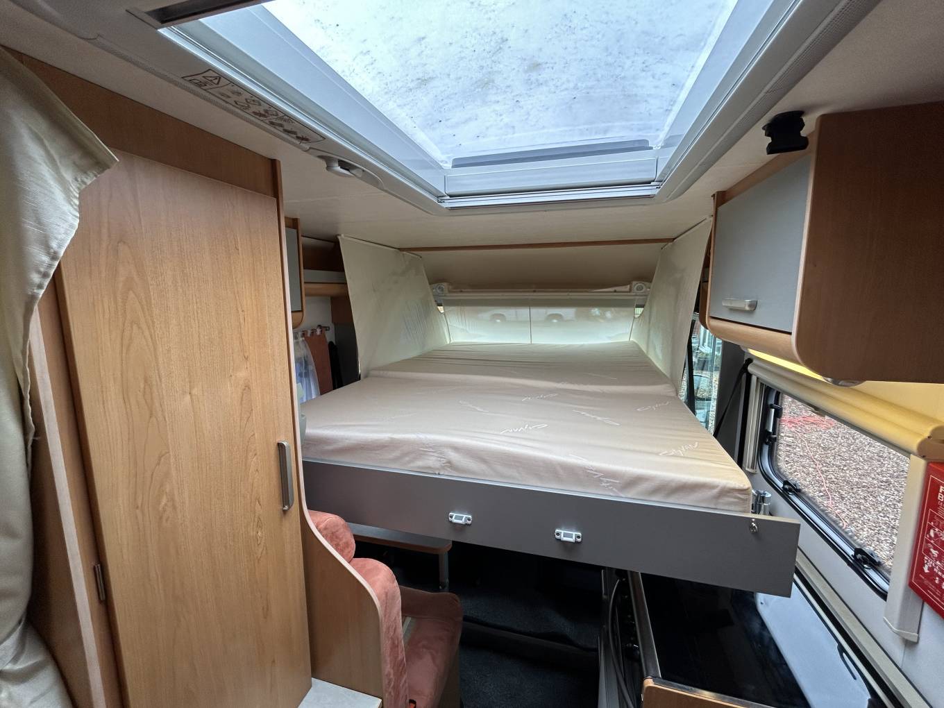 This particular vehicle also features cab air conditioning, wind out canopy and winter pack consisting of heated waste tank, travel heater and pleated cab blinds and comfort pack consisting of electric mirrors, electric step and heki skylight.