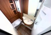 washroom with an electric Thetford cassette toilet, hand washbasin, mirrored