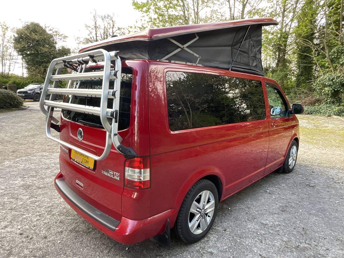 Motorhome Depot is delighted to have on offer a fantastic low mileage example of a Volkswagen T32 Camperworx/Cosmic campers pop top van conversion. Based on the popular VW Transporter chassis with the 2 litre 140BHP engine with 6 speed gearbox, T32 Kombi Trendline has been lovingly created to give both versatility and quality to this superb example. Starting at the rear, we have the tailgate rear door which not only shield you from any rain, also gives access to addition storage options and the fold away table. Inside the side door we are greeted with the kitchen which includes 2 burner gas hob, handwash basin and a 12v fridge. The drivers cab includes CD radio along with cab air-conditioning and drivers and passengers swivel seats for additional seating options.. The pop top includes a slimline mattress to add to the comfort of the over cab sleeping arrangement. The rear Rib seat includes 2 additional 3 point travelling seats and can easily transform to the addition double bed if required. This really is a fantastic example low mileage camper, please call our friendly sale team for further assistance.