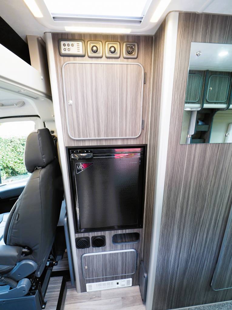 A refillable Gas-Low canister is fitted, a real must for those planning European travel as it takes away the anxiety of finding replacement gas bottles and regulators and powers both the hob and the Truma heating system and hot water boiler. The boiler also works off 230V electrics when on hook-up and there is an electric fan heater fitted as a further heating source.