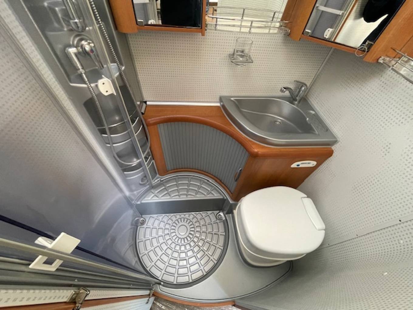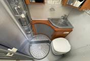 the washroom standard is spacious, with shower, electric flush toilet, hand