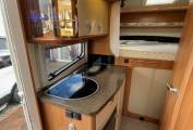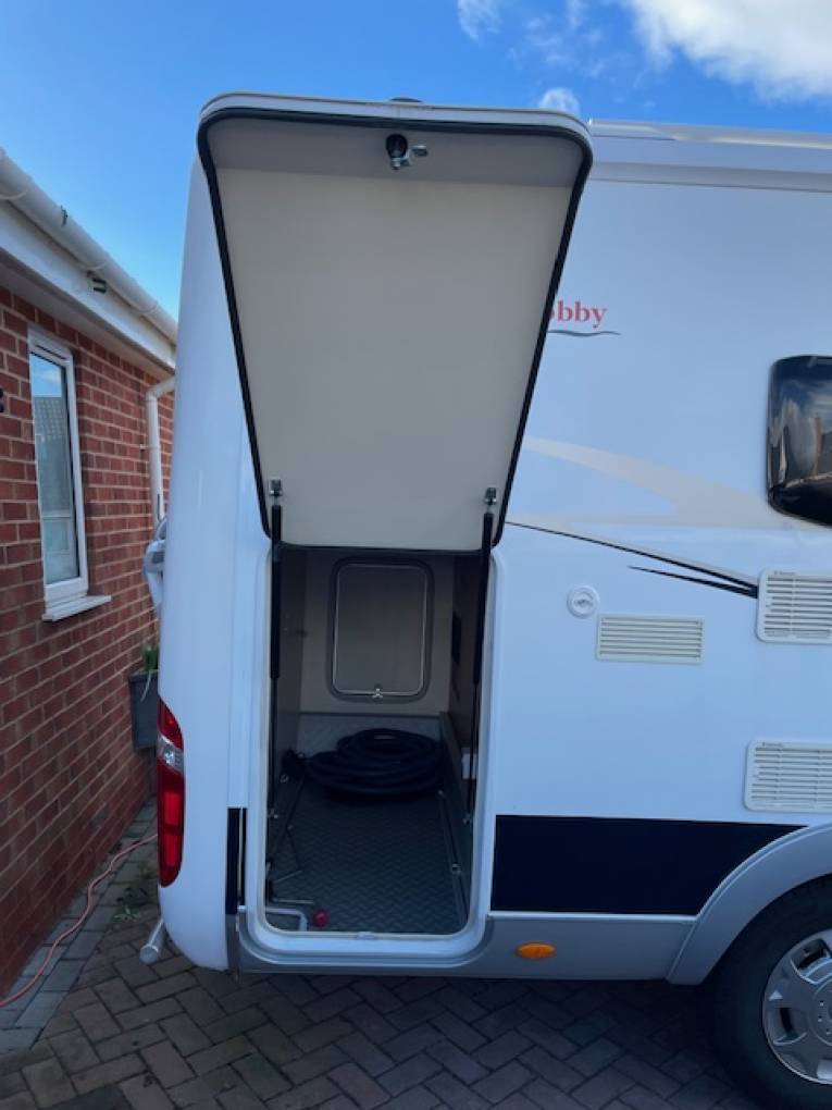 rear. It has electric step and a 240v hook-up cable. The water tank is 100 Litres and the 92 Litre waste water tank is heated.