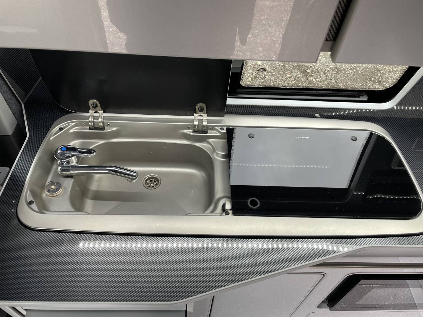 away when travelling; and along with the fridge freezer, sink, hob and microwave this campervan