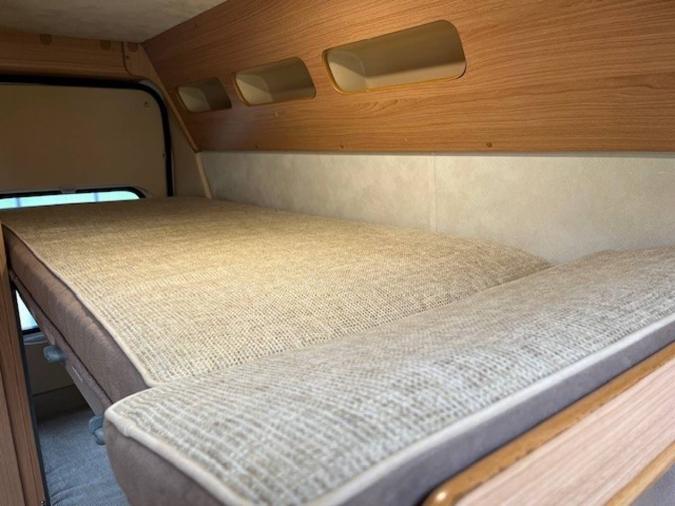 Sleeping is via the Rear Adult Size Bunk Beds. The Lower Bunk if not in use can be raised to make a Very Large Storage Space if required. The Dinette Area also converts to make a further Double if required
