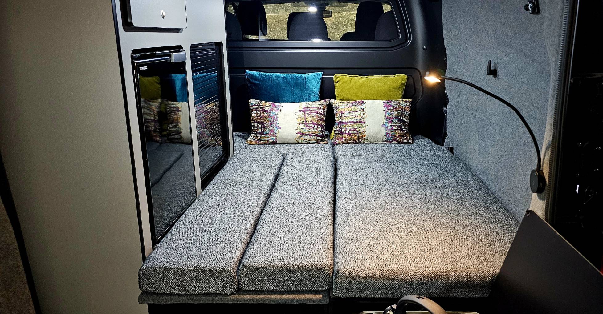 The double bed area is easily made up using the bed board that has a dedicated mounting/storage point on the wall.