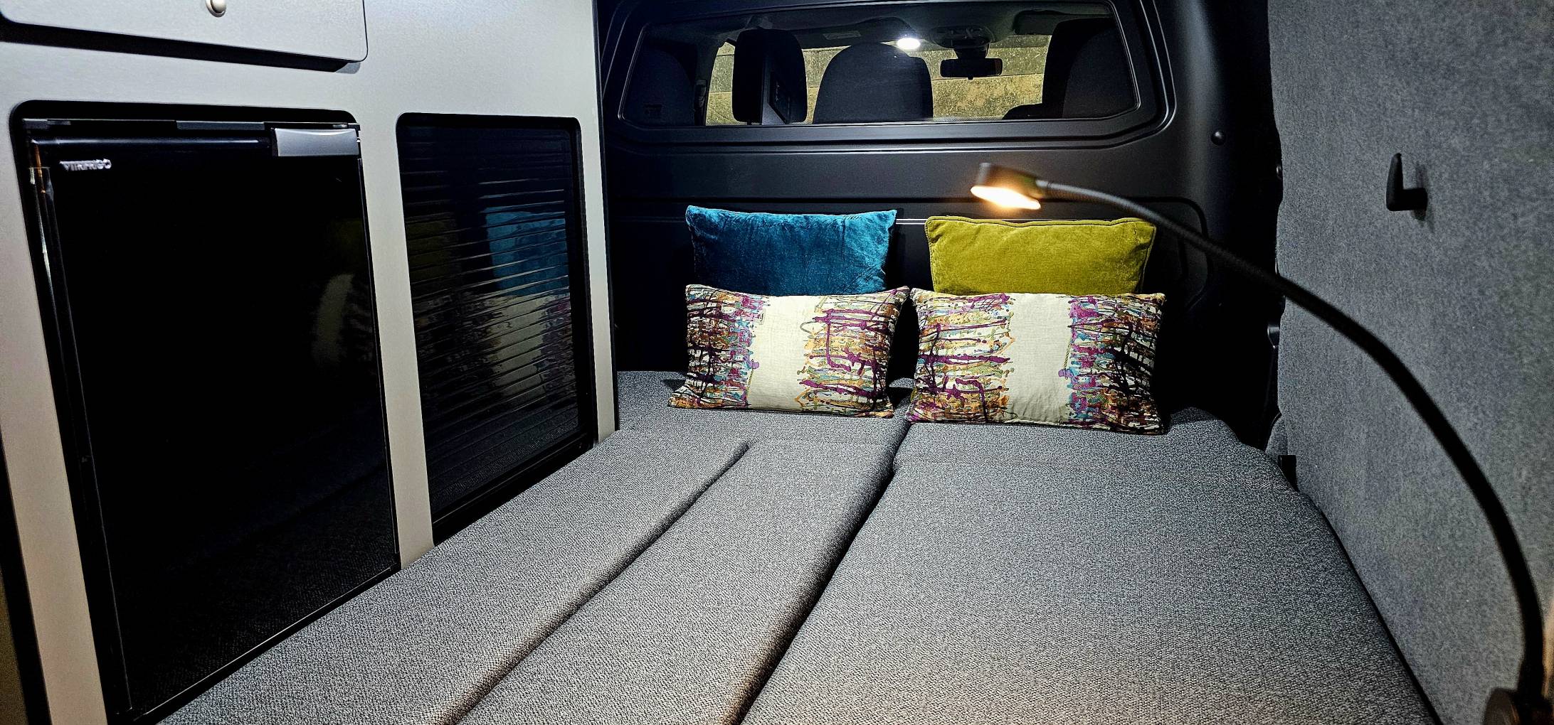 This super versatile vehicle is perfectly suited to the outdoor loving couple or family where the van is used as a daily commuter or as school run pick up vehicle and yet at the weekend or in the holidays it comes into its own as a camper. The roof rails also have cross over load bars to allow the addition of a Tent Box (as an example) to provide an additional sleeping area on the vehicle roof.