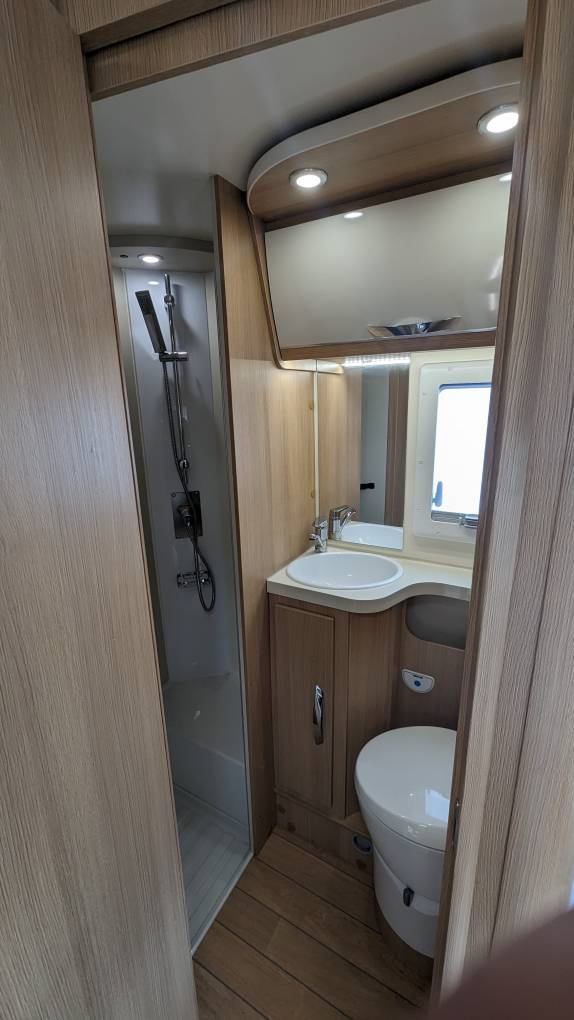 Step outside and admire the Fusion 360's exterior highlights, including a large opening 'skydome' window, sunroof over the kitchen and rear bed, and a 120W solar panel for off-grid adventures. With features like the Truma CP Plus heating system, 100-litre fresh water tank, and 100-litre waste tank, the Fusion 360 ensures you're equipped for any journey ahead. Plus, with the Lux Pack adding high-level DAB radio with reversing camera and removeable carpets, every aspect of your travel experience is enhanced.