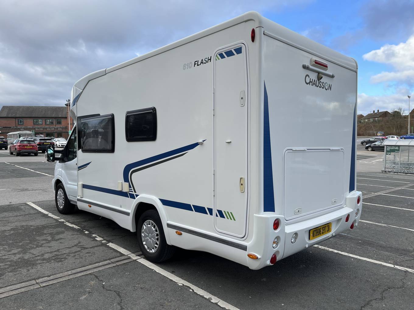 Chausson Flash 610 Compact 4 Berth with Electric Drop Down Bed and Rear Garage Storage. This motorhome has been well looked after and has full service history, current Habitation Check and just 7,266 miles on the clock. At the rear there is a good sized bathroom with separate shower compartment, froward from this is a well equipped kitchen area with large fridge freezer. The lounge area is at the front with settees, 2 captains seats and multi position table, above this is the drop down bed. It comes with Cab Air Con, Cruise Control, Rear Camera, DAB Radio, Blown Air Heating, Canopy Awning and 2 sets of keys. It also comes with gas bottle, mains lead and is ready to go. An excellent example available for viewing by appointment in Lytham St Annes, call for more photos, videos and information.