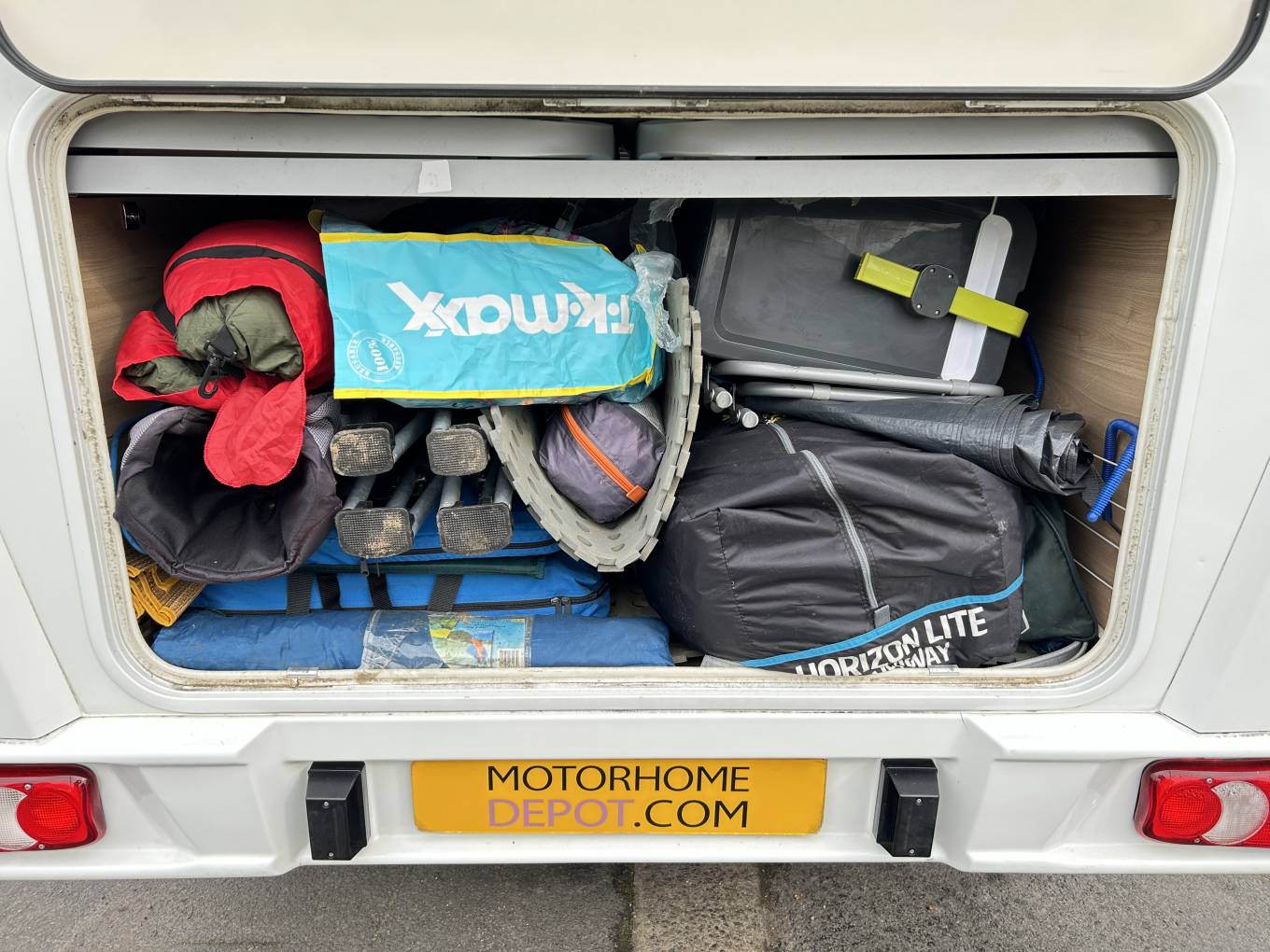 Externally the motorhome has a wind out awning and a large rear locker providing an exceptional amount of storage space in a compact bodyshell.