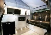 Hob, microwave beneath, sink with pump fed tap, gas bottle, external shower point for humans and animals.