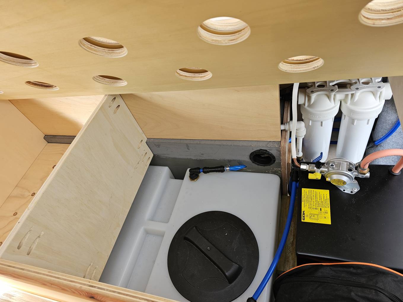 110L Water tank with 12v pump and accumulator giving 30PSI (2 bar water pressure)