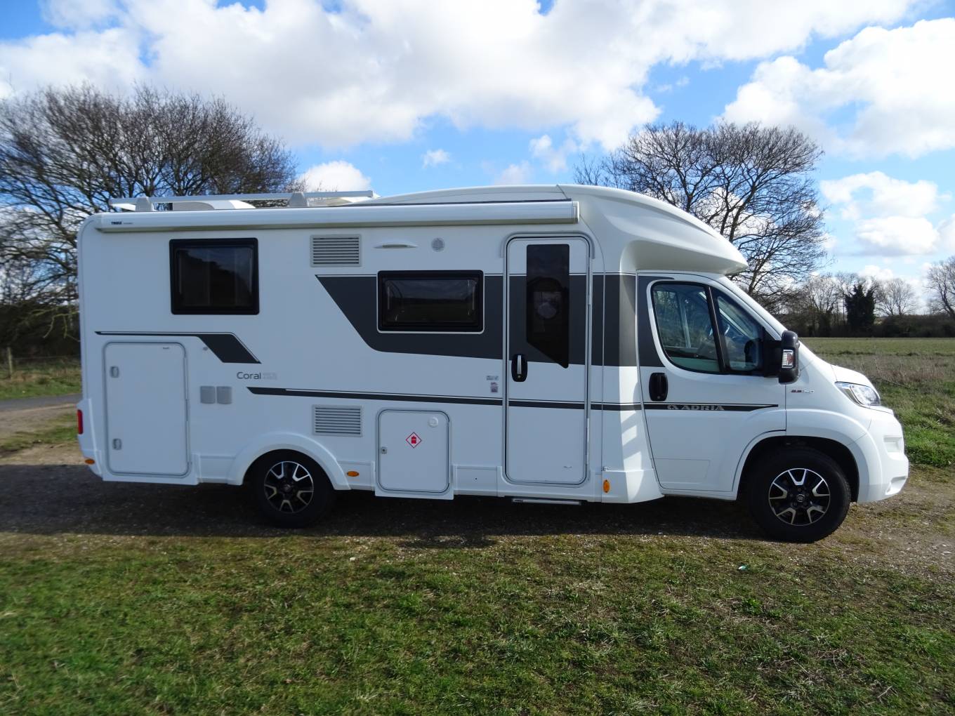 This Stunning Adria Coral 600SL 2 Berth 2019 well designed, exceptionally well equipped and built to a very high standard inside and out with only 12,700 miles with great build quality. Located in the Mildenhall area. The layout consists of a front lounge dinette with two rear passenger seat belts. There is a central side kitchen including 3 gas rings, grill, oven and large slimline separate fridge freezer. Opposite there is a washroom with shower system where the wash basin partition can be swung around to create a shower cubicle. At the rear there are two fixed twin single beds situated above the garage space with lots of storage. The very large rear garage with a door each side for easy access and plenty of storage space. MOT expiry date 31/10/24 habitation report and service history. Other great features Cab air con and habitation air conditioning, refillable gas, solar panel, tracker, wall mounted TV, alloy wheels, spare wheel, sat nav. Externally and internally the motorhome is stunning with a really spacious feel. Weight uprated to 3,850 and you would need a C1 licence.