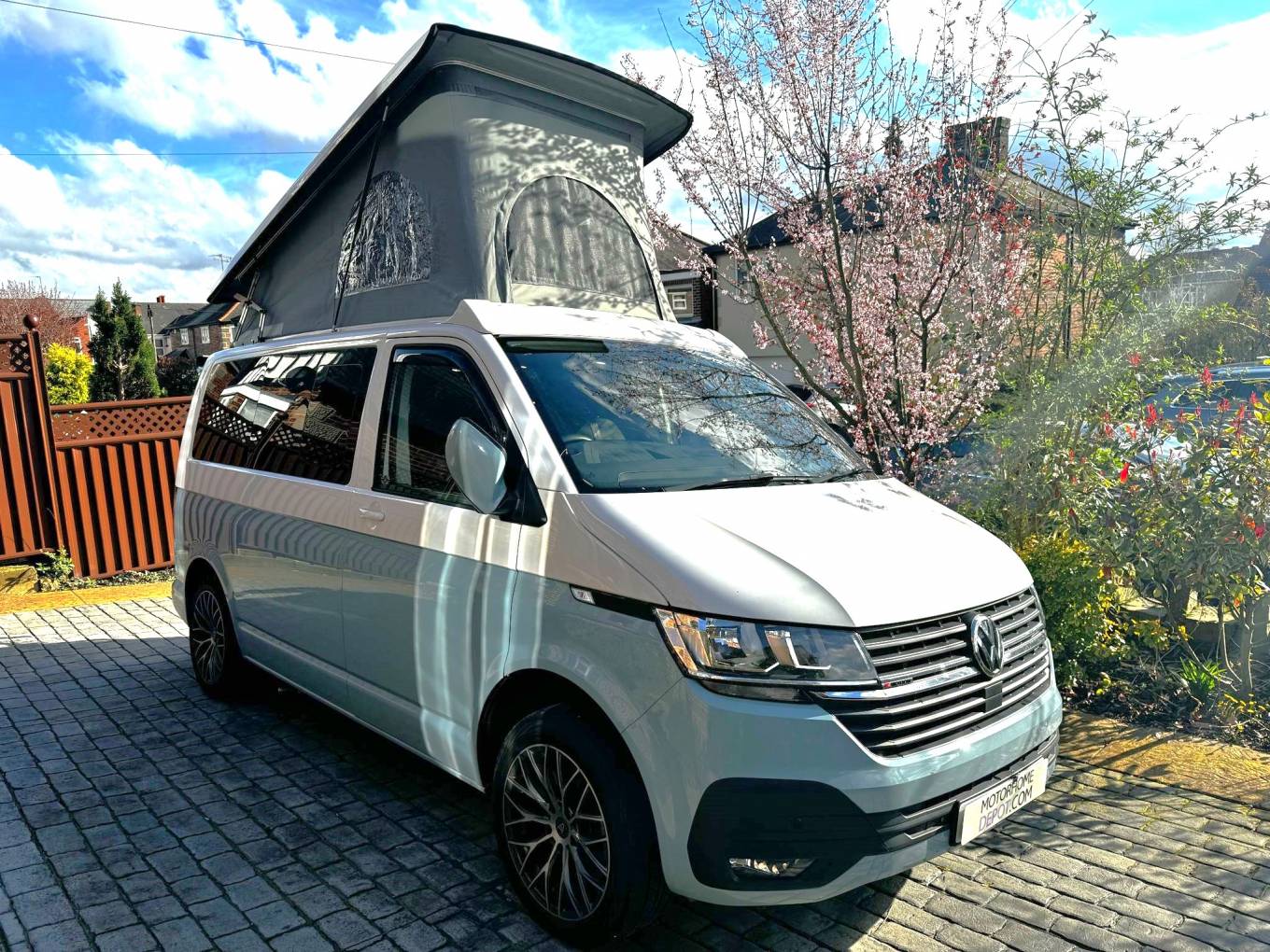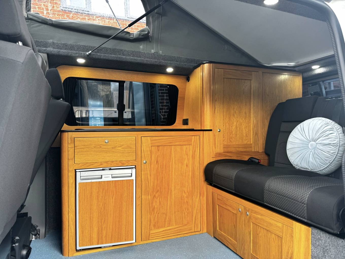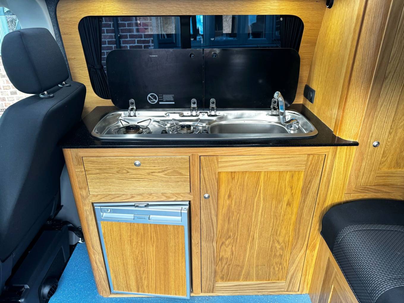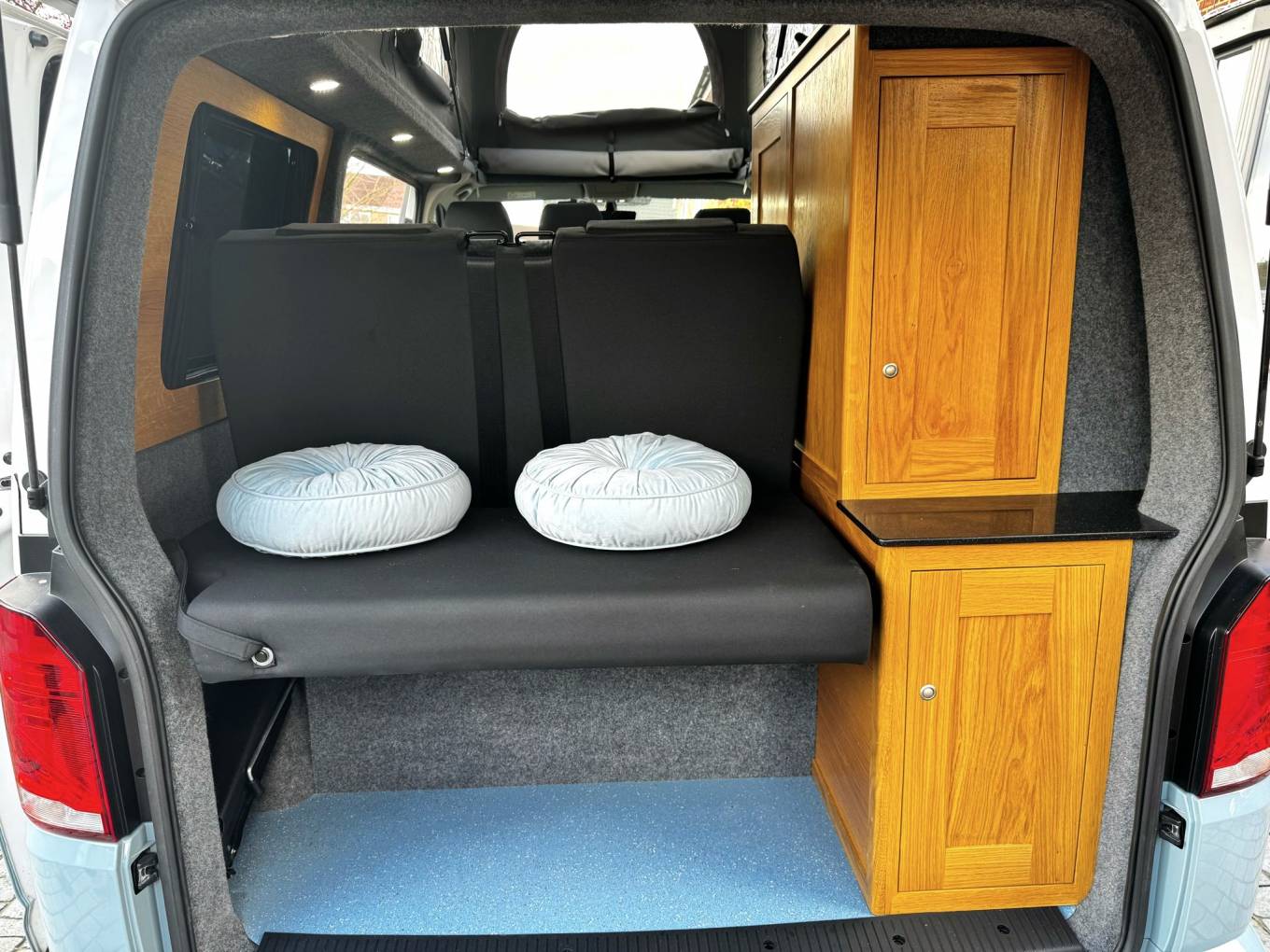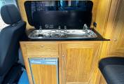 The campervan has been professionally converted by Rolling homes a Volkswagen approved converter and when it comes to the conversion no expense has been spared. With use of lightweight real oak cabinets and Corian worksurface the quality is top notch.