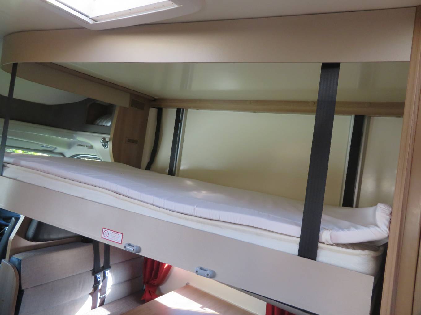 - One of the main features of the motorhome is the amazing electric drop-down double bed from the roof of the dining area, an aluminium access ladder is stored away on the rear of the washroom door when not in use.
