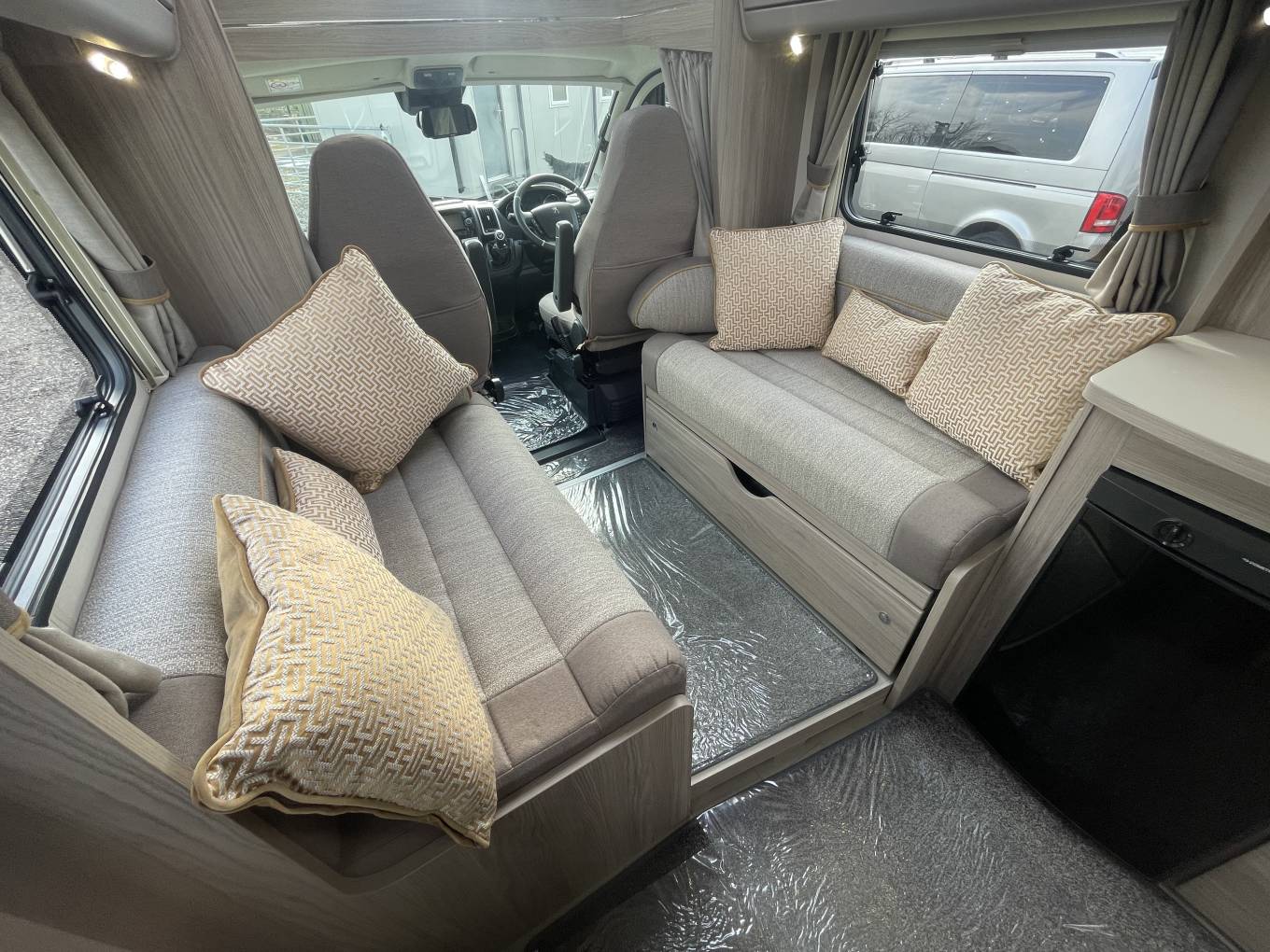 Motorhome Depot Retail Farnsfield present this stunning This Elddis Evolution 155 is based on the Peugeot Boxer chassis with the 2.0 Diesel engine and 6-speed manual transmission. It features the following specification; 4 x Forward Facing Belted Seats (2 are foldable), Cab Air Conditioning, Cruise Control, 4-Spoke Multifunction Steering Wheel, Electric heated Door Mirrors, Rear View Camera, Rear Toilet/Bathroom/Shower Room, Fixed Rear Double Bed, Twin Sofa (converting to double bed) Separating Partition to Rear Bedroom, 3 Burner Hob with an electric hot plate & Double Oven, Fridge Freezer, Built in Microwave, Extensive Fitted Cupboards.