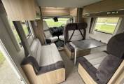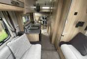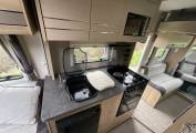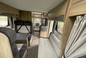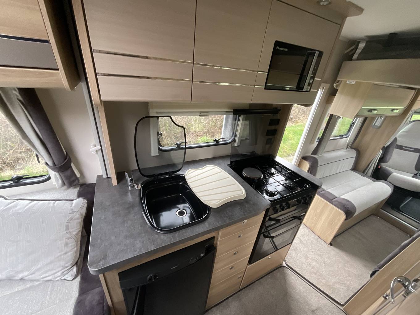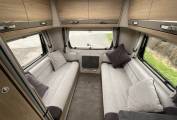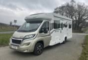 Built on the popular Peugeot 2.2 litre Diesel engine in stunning gold effect paint and graphics. The vehicle is 3500kg, so can be driven on a standard licence. The layout is perfect for the family staycation with a rear lounge area that converts to a double bed, double dinette area that converts into the second double bed with an electronic drop down 3rd double bed above. Central galley kitchen complete with Hob, oven, grill sink and microwave on one side opposite the large washroom with sink, storage cupboards, toilet and shower. This motorhome comes with a large Thule wind out Awning, bike rack for two bikes, underslung spare wheel, external shower point, solar panel, reversing camera and alloy wheels This makes it one of the most sort after family motorhomes on the market.