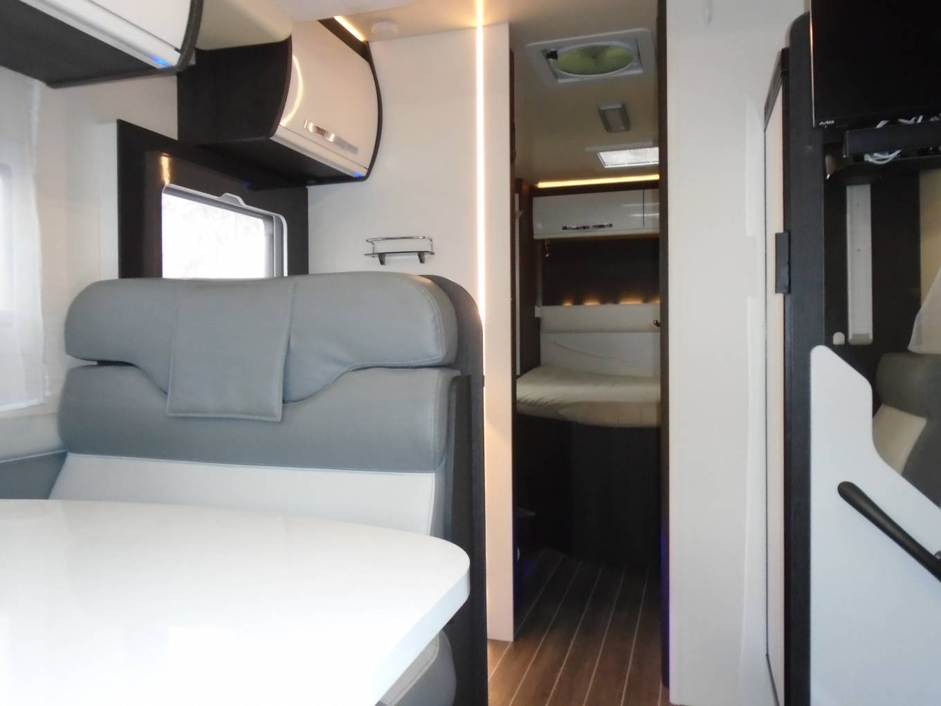 Based on a Ford Transit chassis with a 2.0 litre 130bhp engine and a 6-speed automatic transmission. This bespoke design, low-Line model is fantastic for families looking to explore the outdoors. Sleeping up to 4 people you can find a fixed island bed in the rear and an electric drop down bed above the dining area. In the kitchen you will find a 3-burner gas hob, oven, grill, stainless-steel sink and a large fridge/freezer. This sought-after layout has its own shower cubicle, a separate vanity sink and swivel style cassette toilet with electric flush. Fitted as standard are automatic transmission, reversing camera, 12v fridge/freezer, gas/electric heating and hot water, custom sliding windows, an omnidirectional Status aerial and Isofix car seat points.
