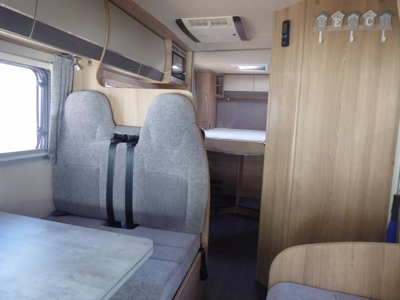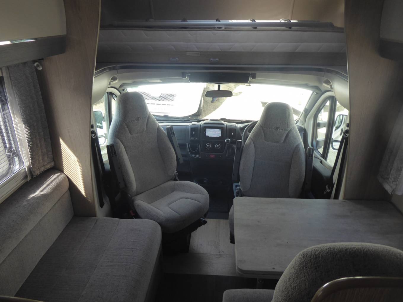 Behind the cab is an offside forward facing half dinette (with two additional seat belts) and a nearside bench seat. Augmented by the use of the swivel cab seats, this forms the primary leisure/dining area, which can also be converted into a large single or smaller double berth.