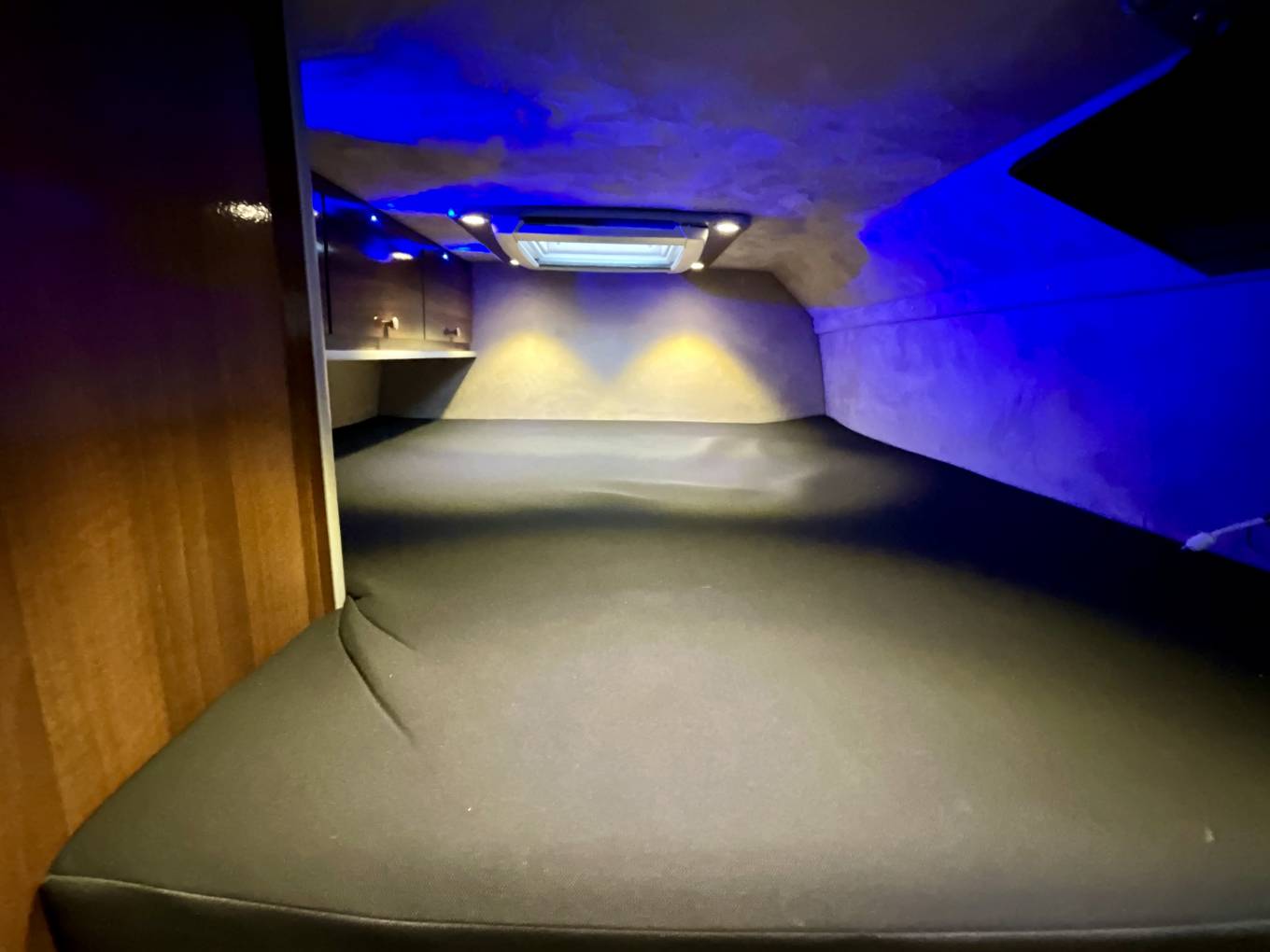 As you step inside, the layout is a rear transverse bed that sits above the rear garage. You can access the garage from the inside through a storage flap underneath the ladder to access the bed.