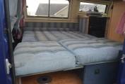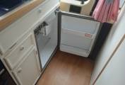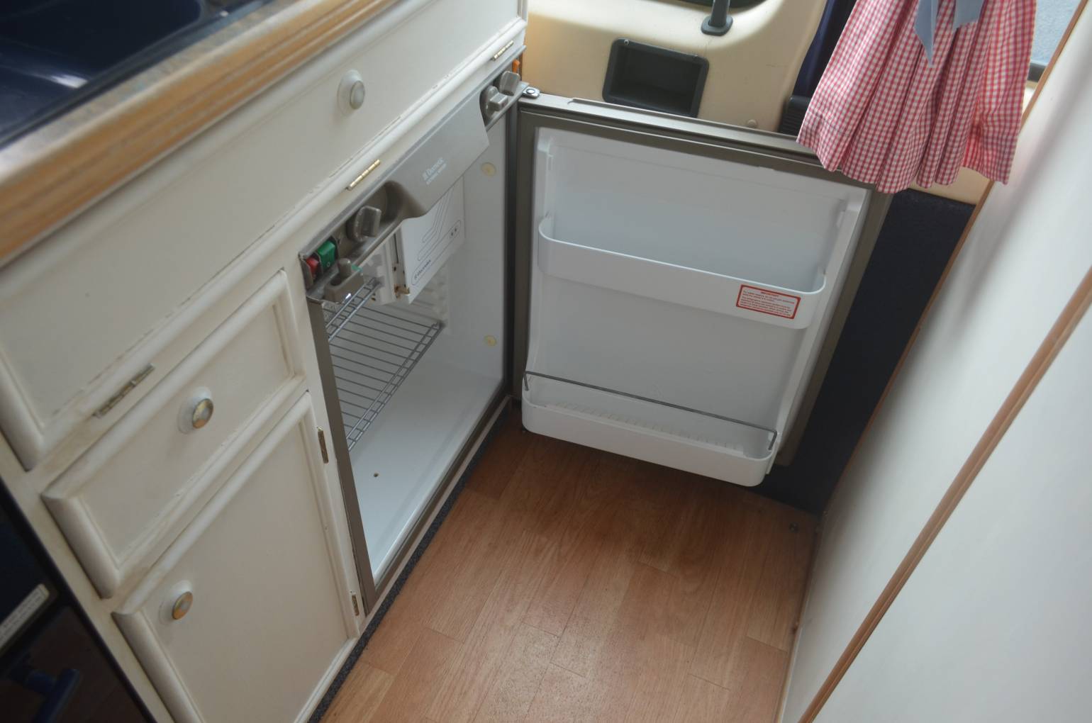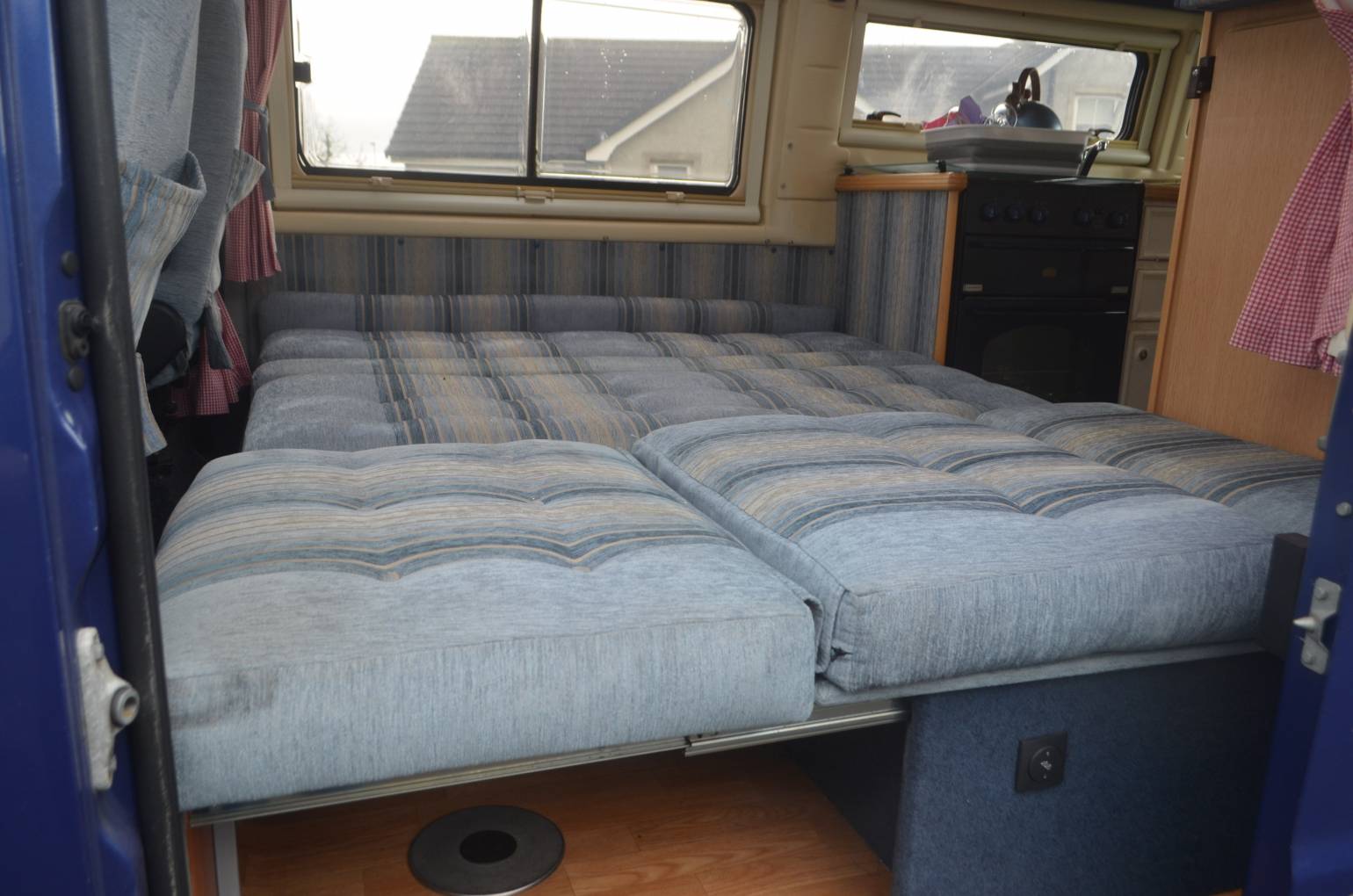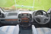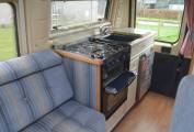 Starting at the rear of this compact camper, your kitchen area is very well equipped and has a full sized cooker with a 3 burner gas hob, grill, oven, sink with hot and cold water and a 3 way fridge. Adjacent to this is the washroom area, with a cassette toilet, space saving drop down hand wash basin and shower controls. Into the front, you have a good sized and comfortable side bench as well as a single forward facing seat which also includes 3 point seat belt for that extra passenger. This area also converts into a good sized double bed or for a single sleeper can be converted into a single bed with the help of the swivelling seat. Your dining table can be stowed away when driving. Great storage throughout the habitation area.