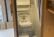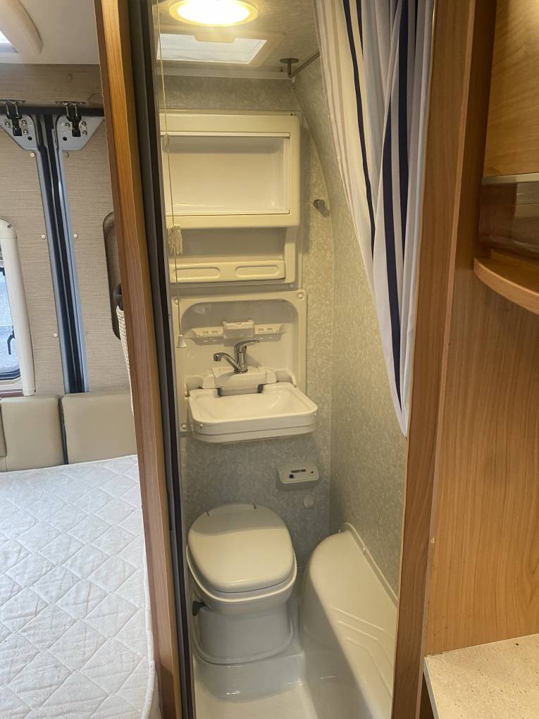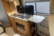 worktop space. The washroom has cassette toilet, fold down sink and shower. Hot
