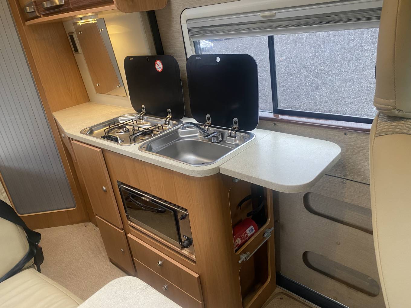 sink, Waeco fridge with small freezer compartment and additional foldaway