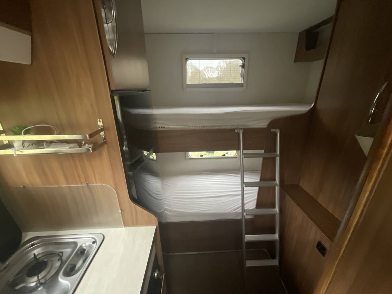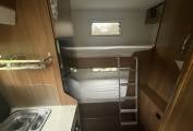 Finally to the rear are two bunk beds, the lower of the two can be lifted when not in use to create a large garage area to store table and chairs etc with a sliding partition to close. There is also a large hanging wardrobe for additional storage.