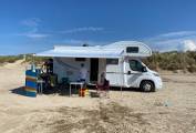 Over the cab is the second of the double beds which is accessed via a removable ladder. It has safety nets for use with children and can be lifted up out of the way while travelling to make access into the cab easier.