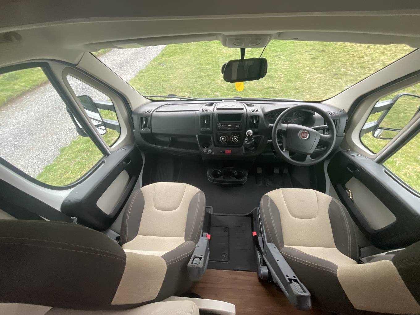 This is the perfect family layout. From out of the Pilote stable the C700 Essential based on the ever popular Fiat Ducato chassis plated at 3500kg this vehicle can be driven by anyone with a Full UK licence. With the 2.3 litre Multijet turbo diesel engine, 6 Speed manual gearbox in the 130bhp form. The cab benefits from: power steering; cruise control; air conditioning, electric windows front; electric heated mirrors; central locking front; Twin reverse camera screen; curtain to close off.