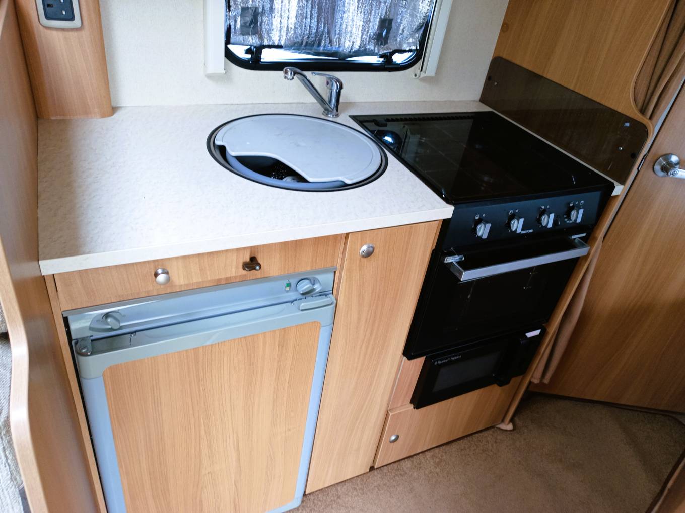Very clean upholstery throughout, carpets, all blinds and screens present and correct heating on gas and electric and 3 way fridge freezer, all working as they should.