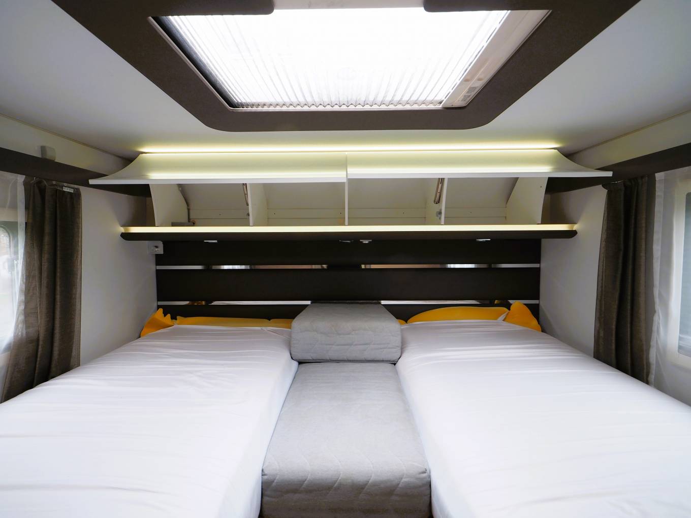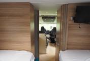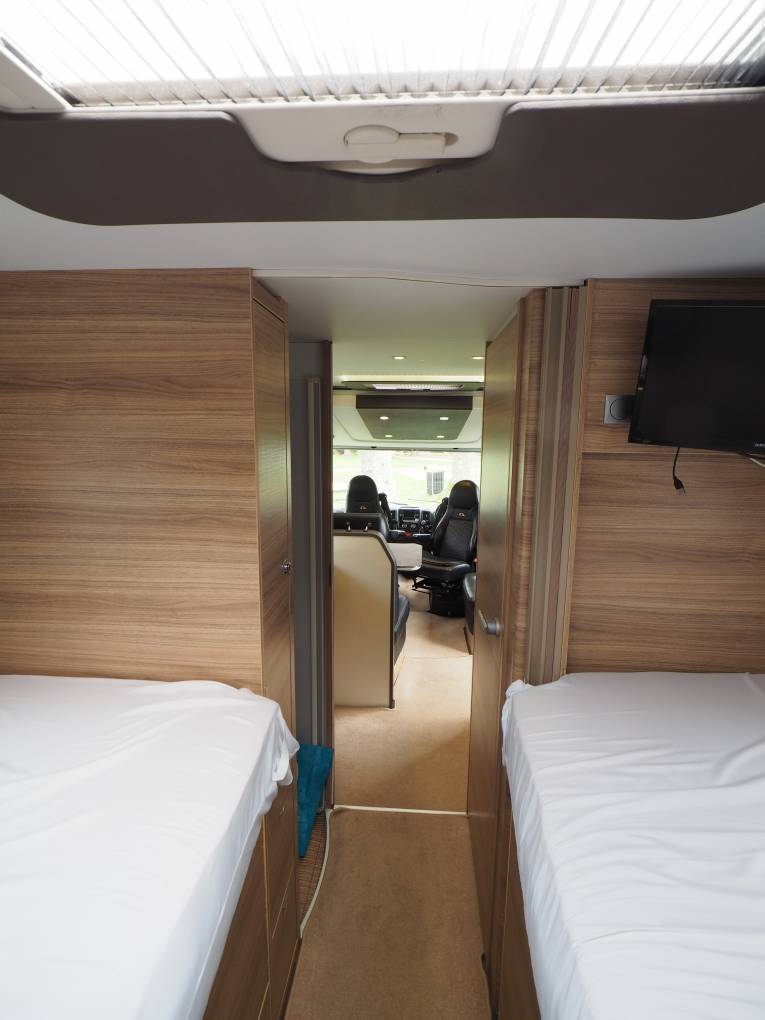 The bedroom itself is fitted with two singles, which can double up to make one large bed if required. Steps leading up to the bed have storage underneath and access to lockers which aren’t part of the garage either side to boot. The beds are large, measuring 1.99m/1.88m x 0.85m (6’6”/6’2” x 2’9”).