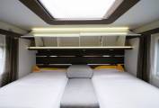 The electric drop down bed above the cab is very easy to manoeuvre, it is large in size and will comfortably sleep 2 adults, measuring 1.9m x 1.5m (6’3” x 4’11”). The bed can then be easily put away, with the bed made up with the click of a button.