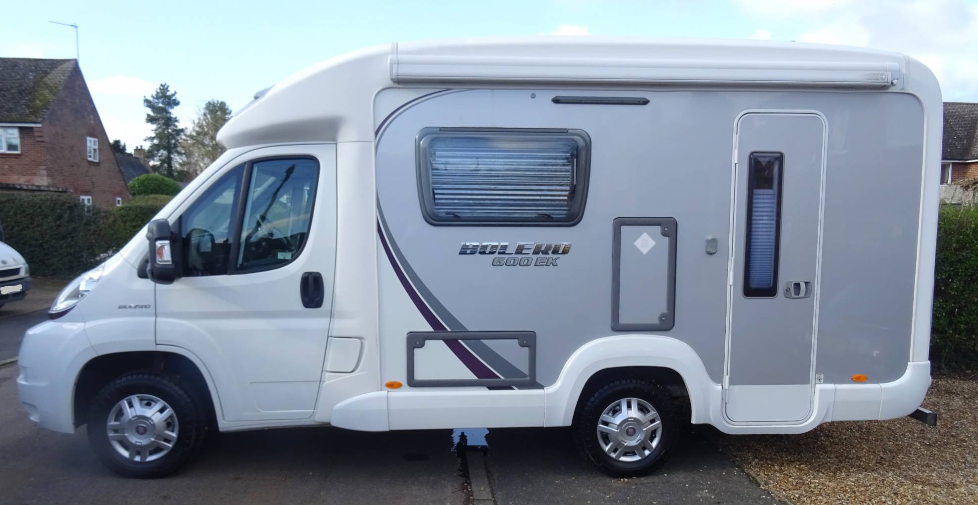 Swift Bolero 600 EK - Compact Motorhome - Only 16012 miles - Full Service History - Most Recent 21 Sept 2023 including Cambelt and Water Pump - Habitation Check 21 Feb 2024 - 4 New Tyres - Recently fitted 100w Solar Panel - Spare Wheel - Tow Bar Mountable Bike Rack and Luggage Box - Tow Bar - Inflatable Drive Away Awning - Thermal Silver Screen Covers - Remis Cab Blinds - MTPLM 3300 - Manual 6 Speed Gear Box - 2.3 Fiat Ducato Multi-Jet 130 Bhp - Excellent MOT HIstory - Wind out Canopy - Spare Keys - Length 5.90 metres - Width 2.31 metres - Height 2.77 metres. First Registered 4 July 2011. This motorhome is located near Bedford.