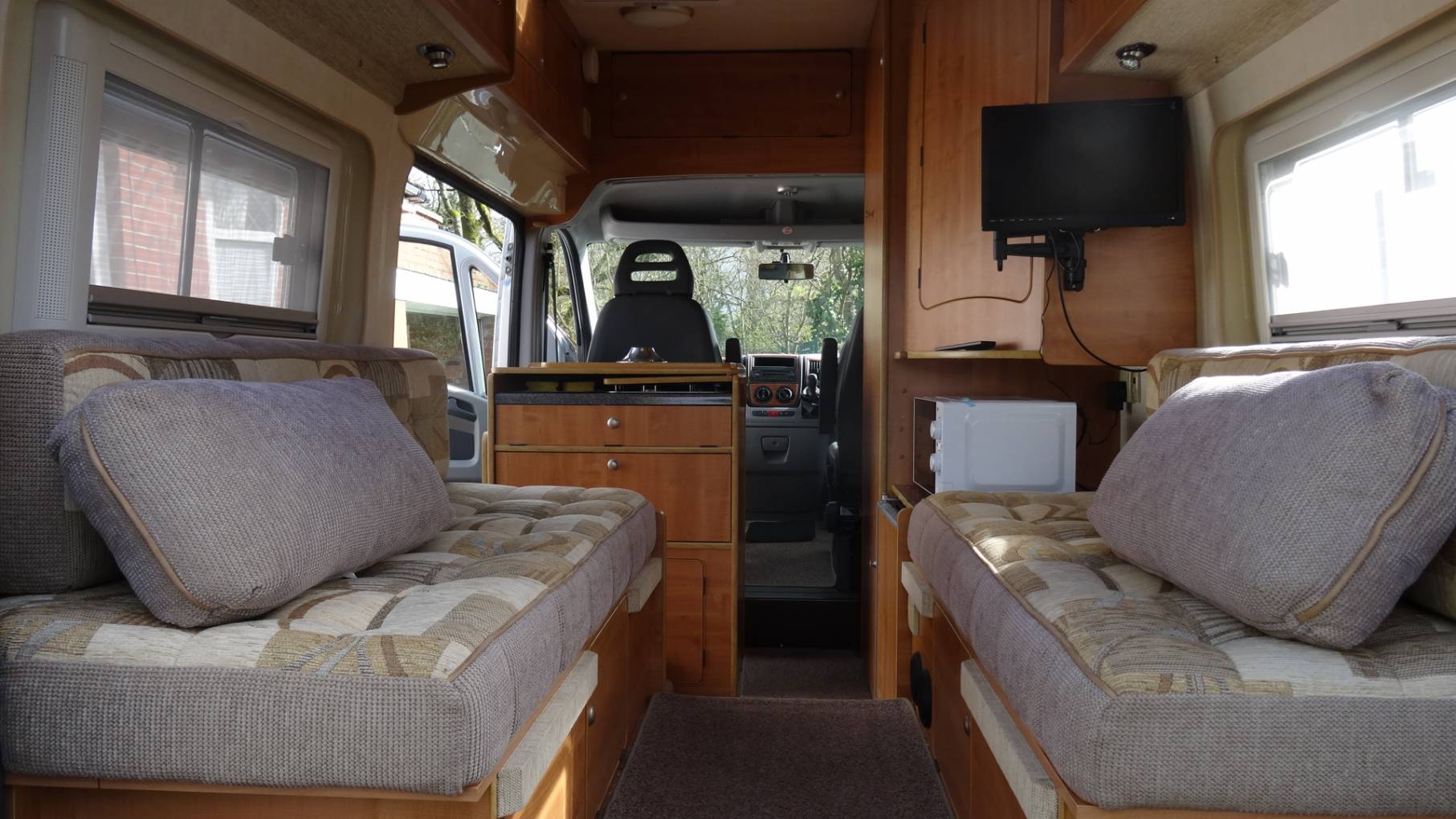 Externally there is a solar panel, reversing sensors, underslung water and waste tanks and multi-directional