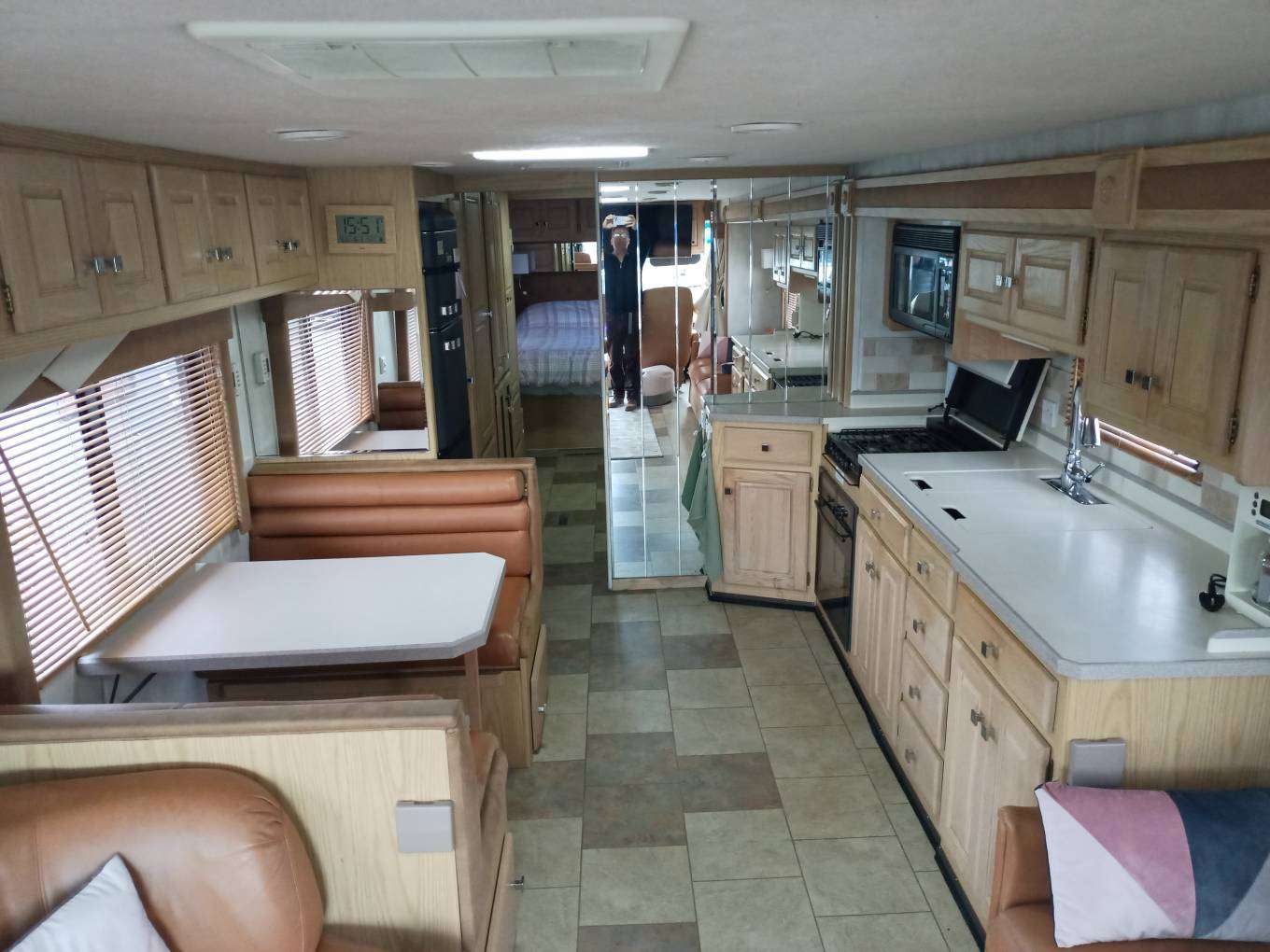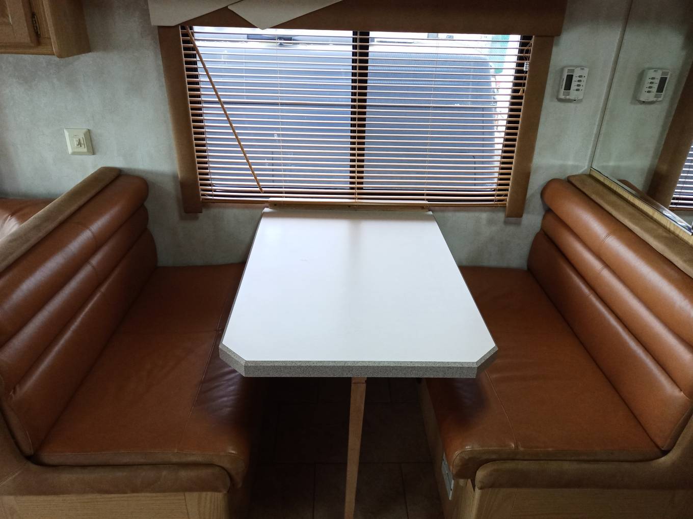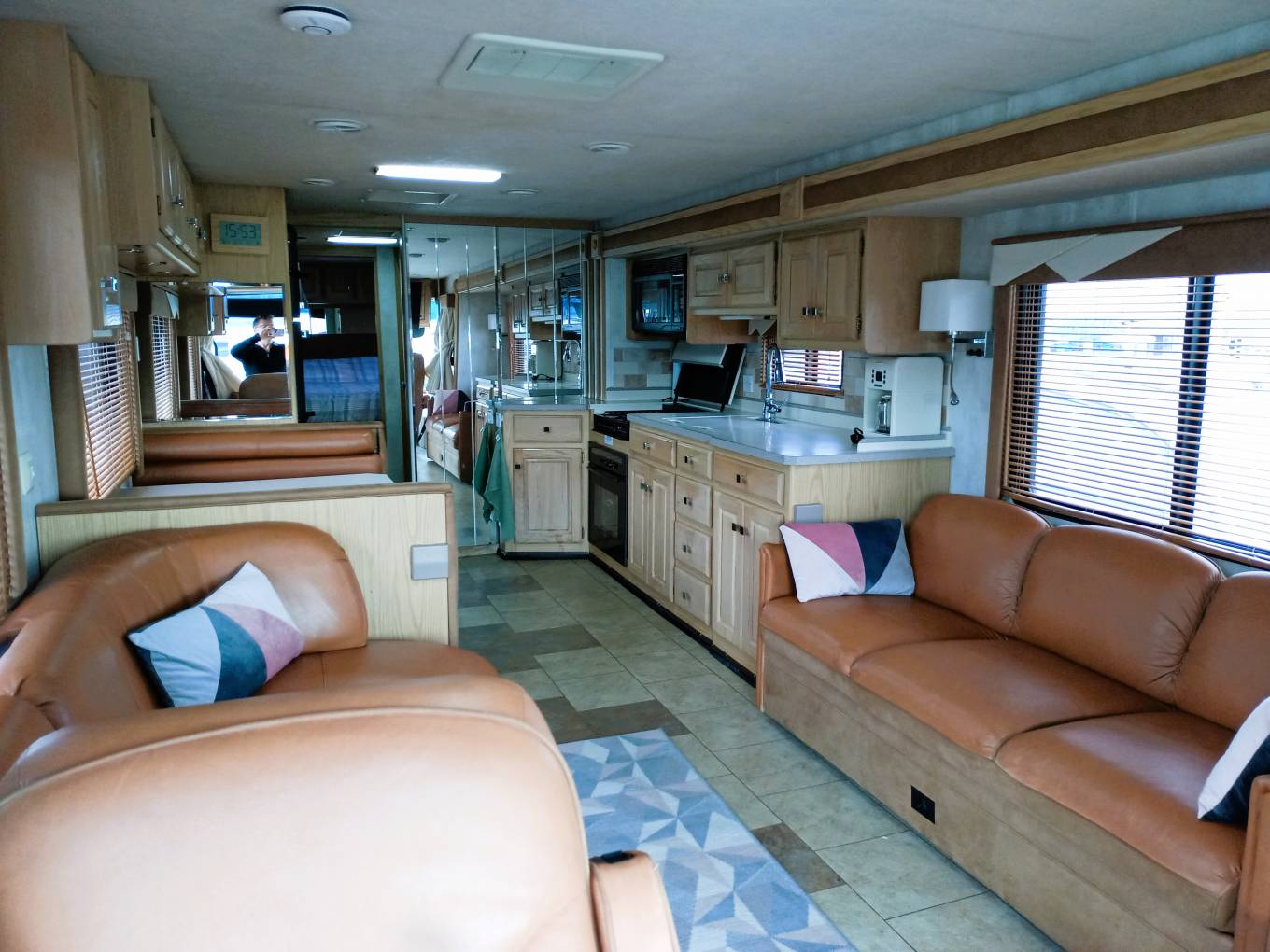 The flooring is a combination of vinyl tile effect covering and runners and rugs. It is in excellent condition. Mirrors to the rear of the lounge section make the internal space seem even larger.