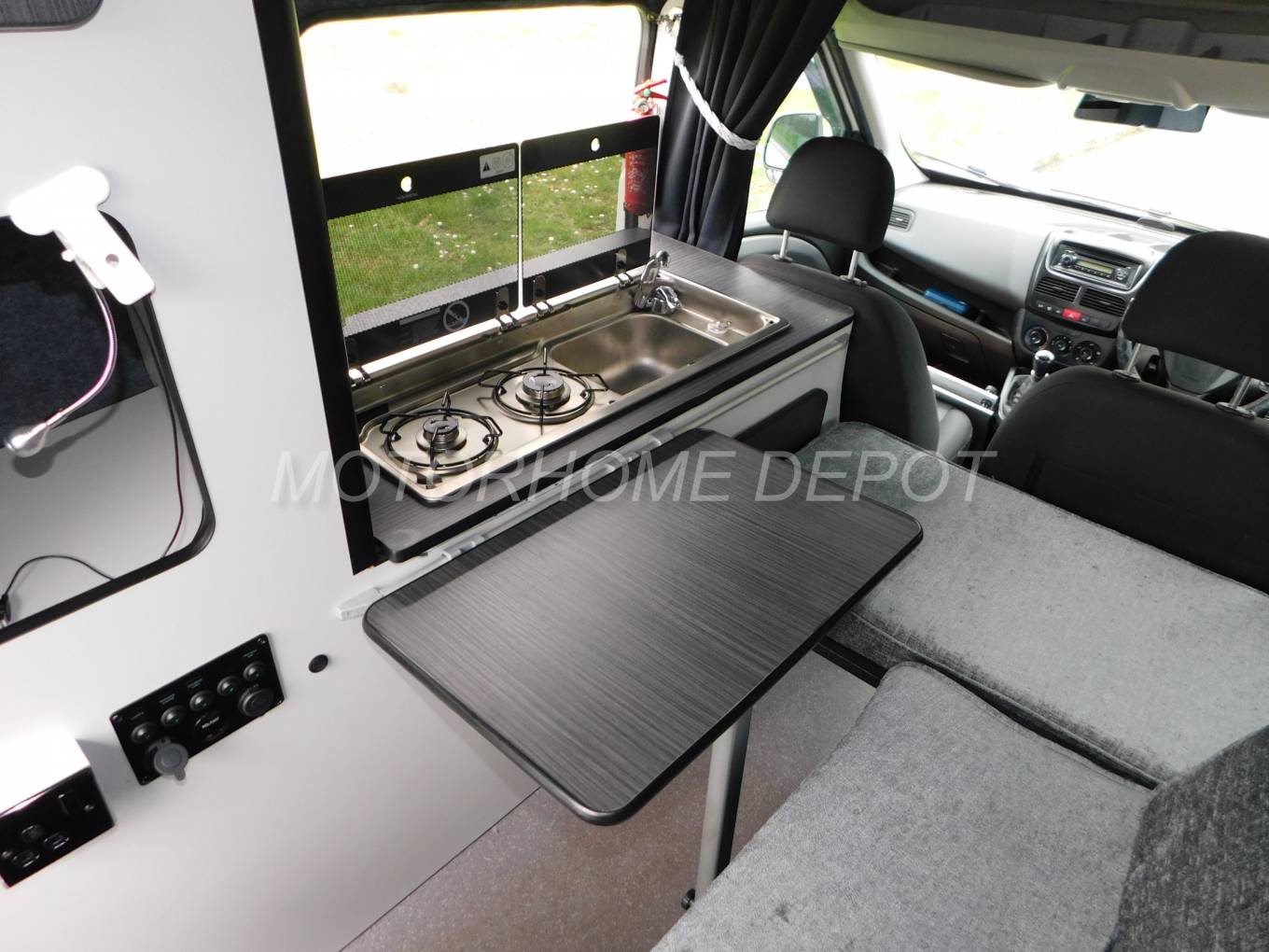 beneath, a 240v socket, plus the campervan control panel that has 12v outlet